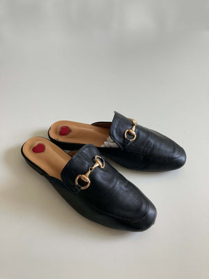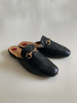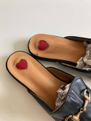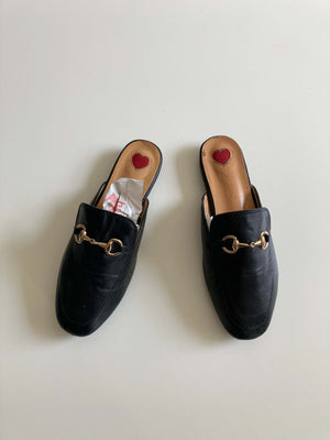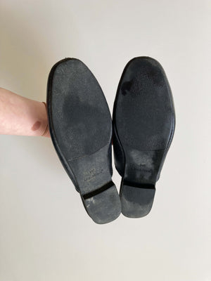 Kleine schwarze Lederslipper in 38. Plus Versand
