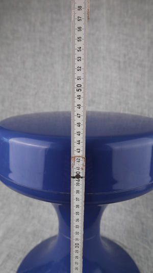 Blauer Kunststoffhocker in Tulpenform. Ideal für das Badezimmer oder als Blumenschemel. Plus Versand