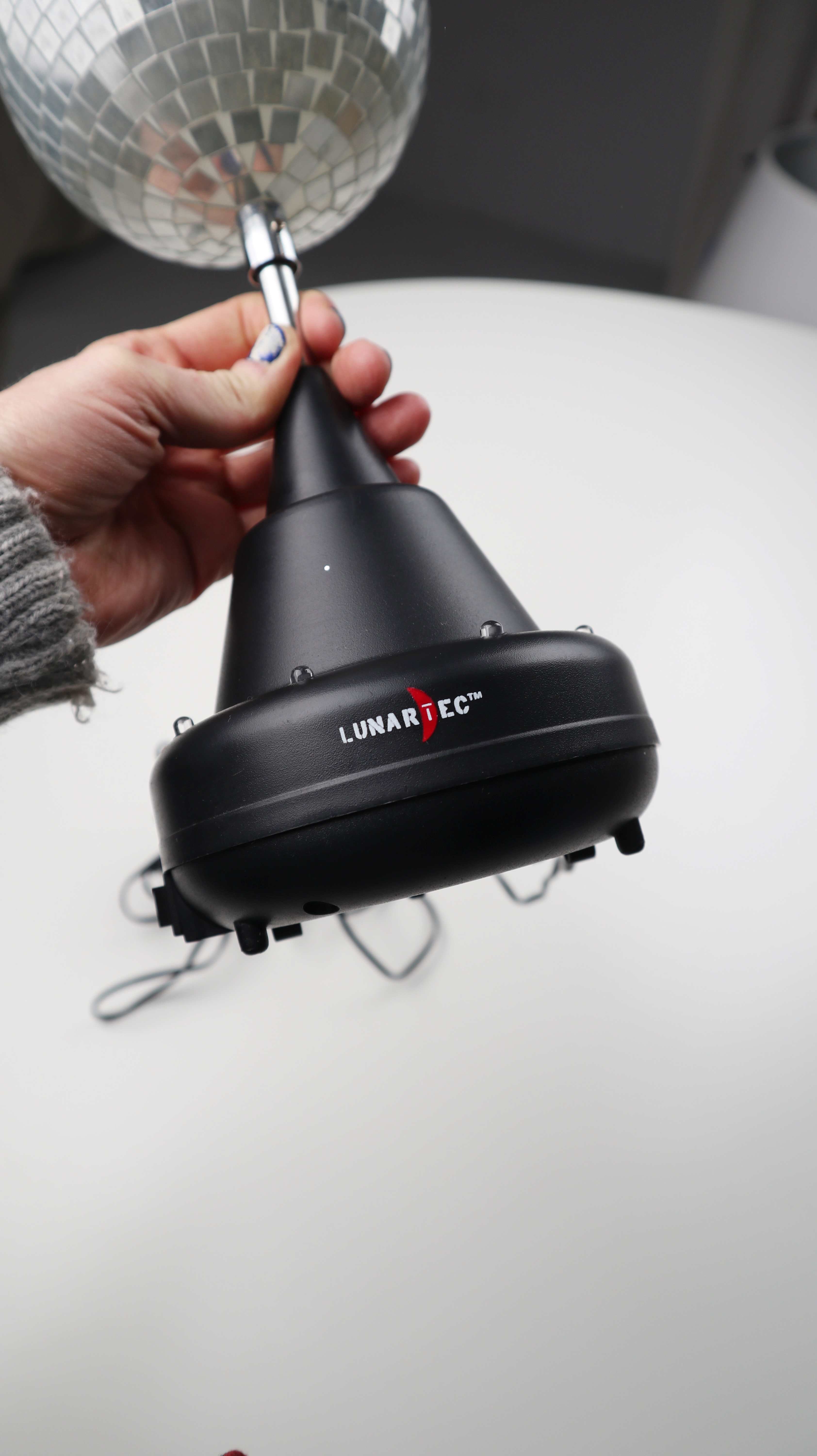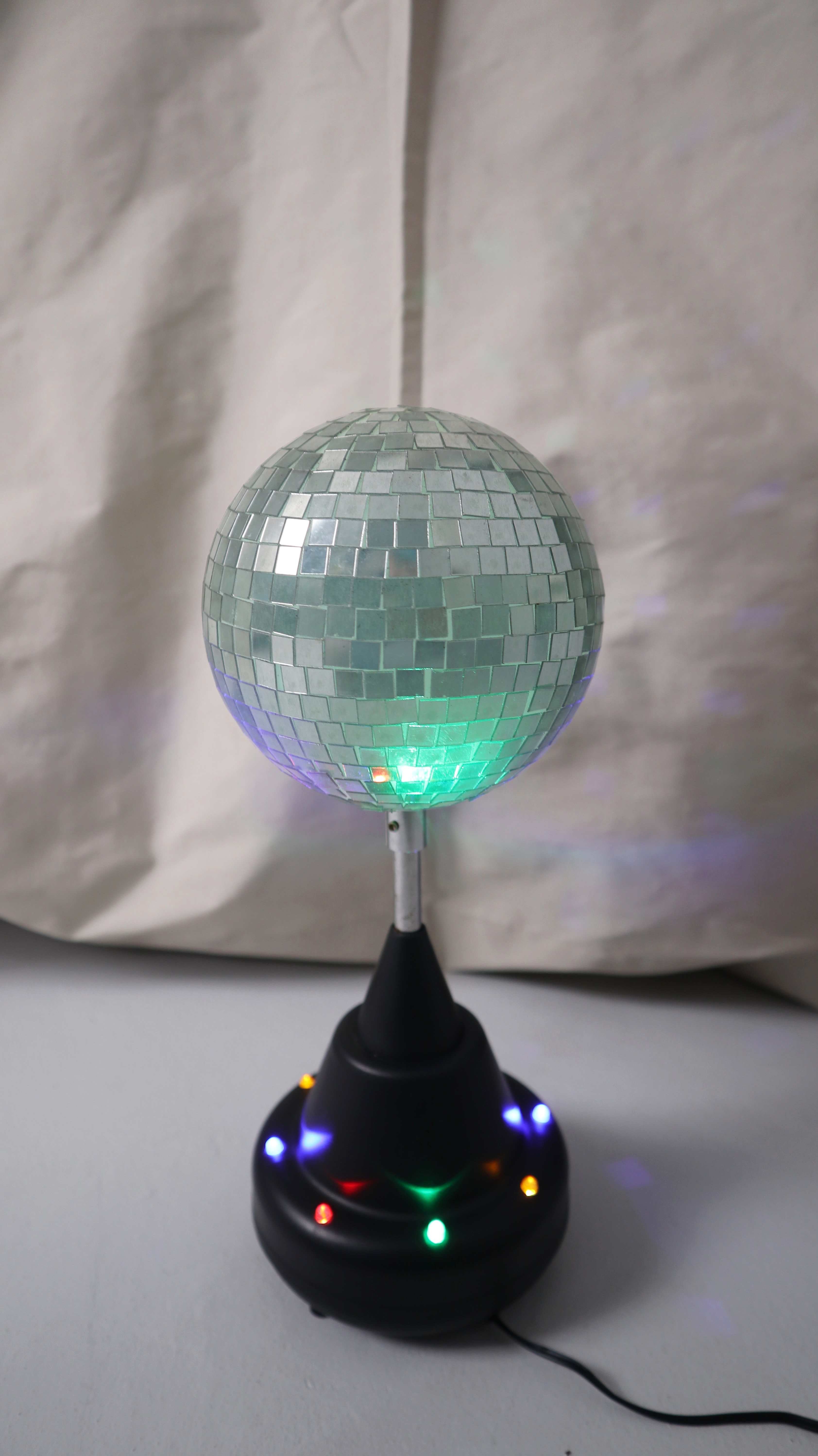 Kleine drehbare Discokugel, die mit bunten LEDs ausgestattet ist. Plus Versand