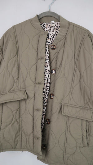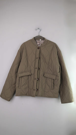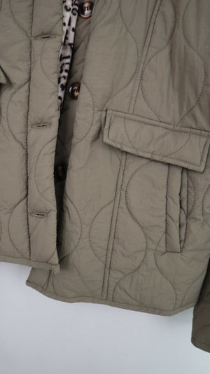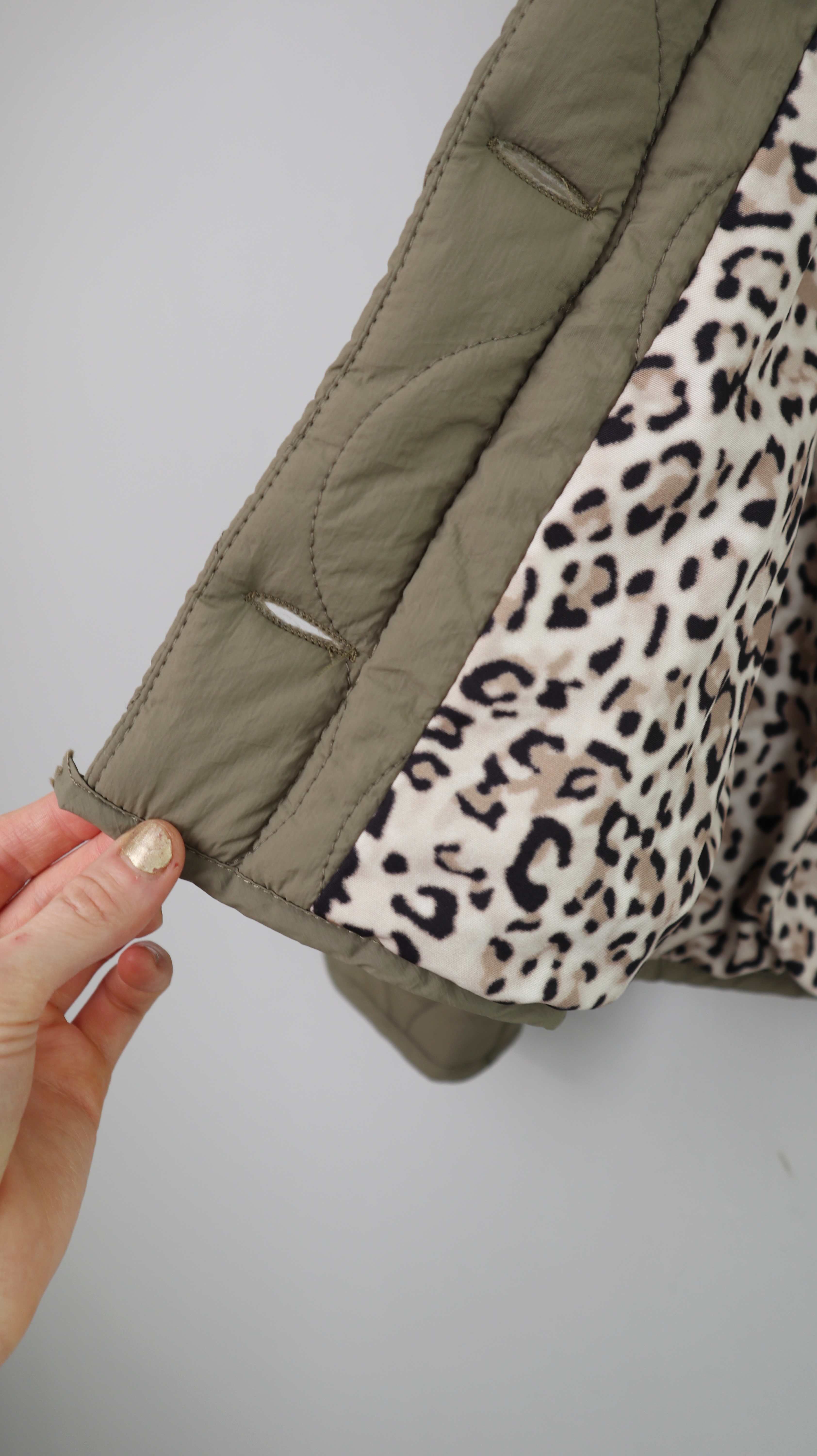 Steppjacke Grün Khaki 38 M basic Leo Leopardenmuster gesteppt
