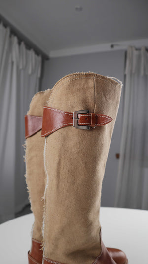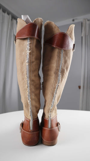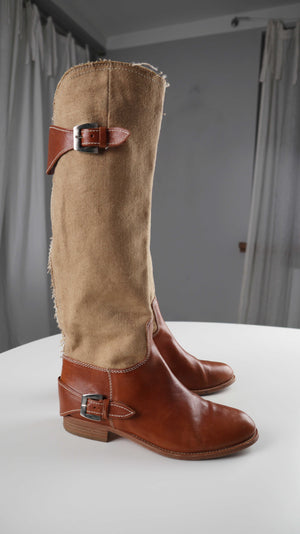 Sehr schöne neuwertige italienische Stiefel in 38. Oben ist Leinen verarbeitet. Plus Versand