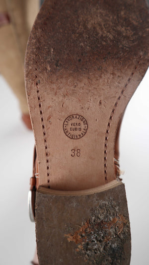 Stiefel 38 Braun Lederstiefel Leinen Lavorazione Artigiana Leinenstiefel