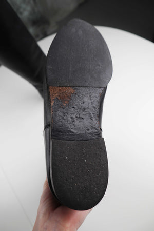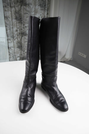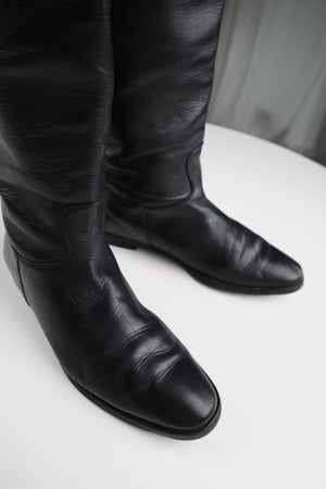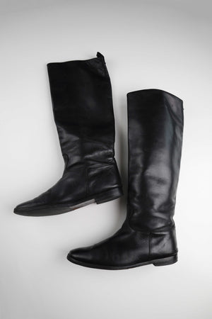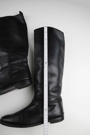Lange schwarze Lederstiefel ohne Marke in einer 41. Plus Versand