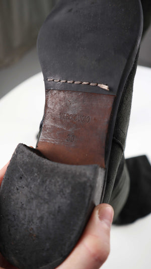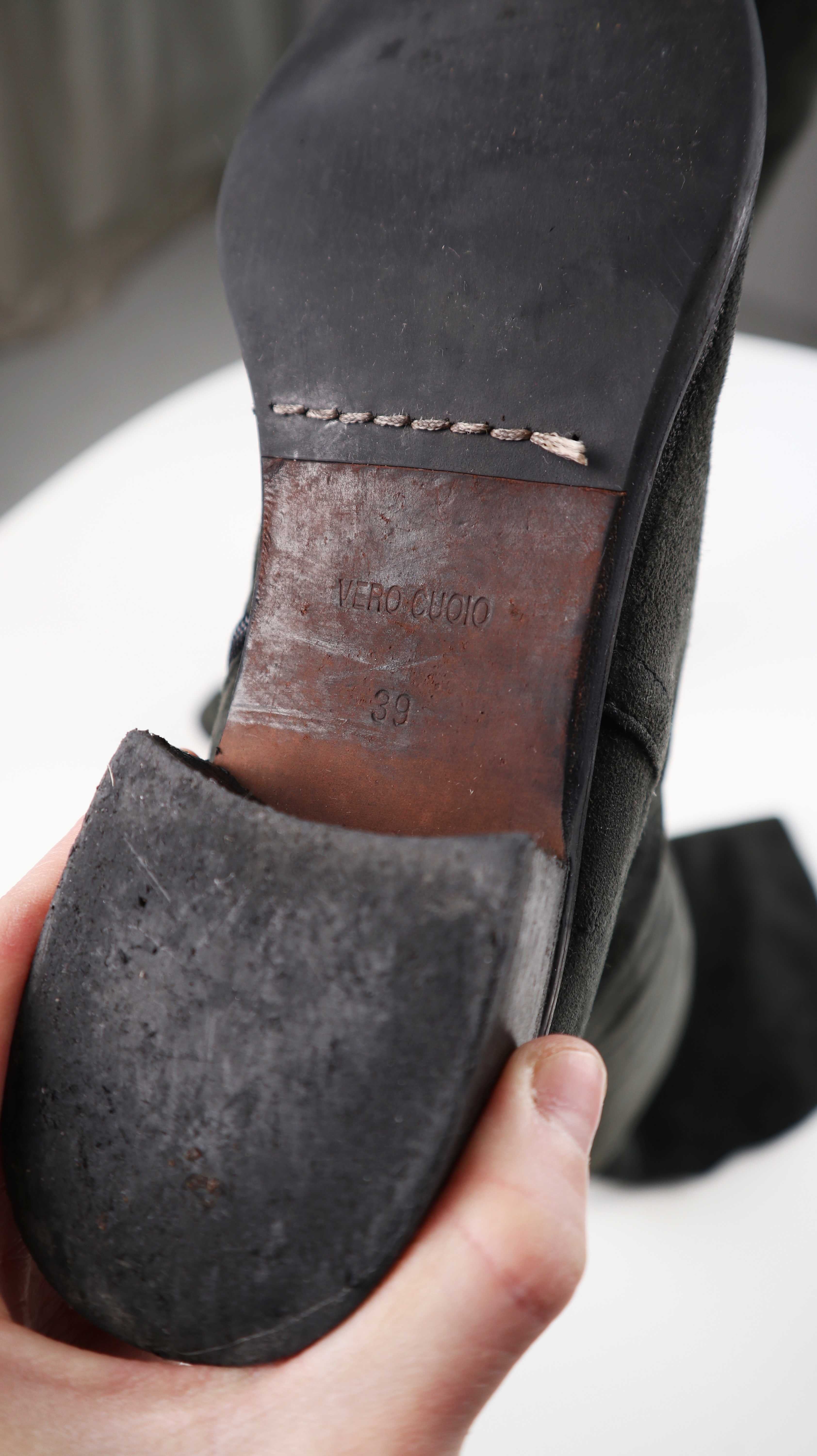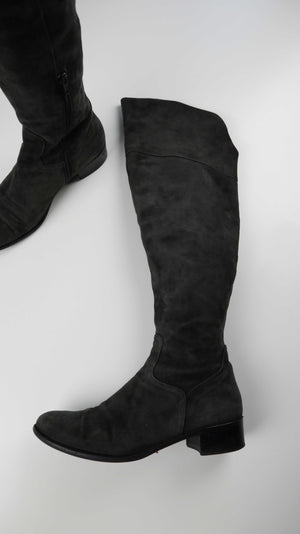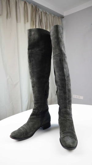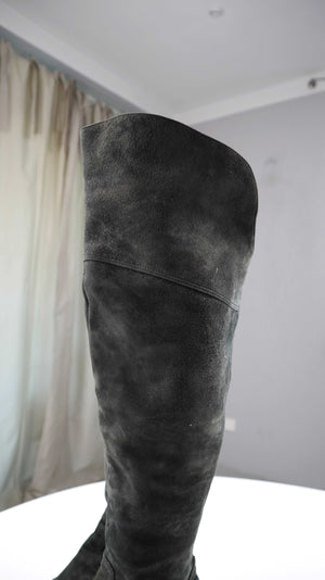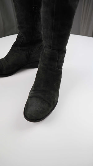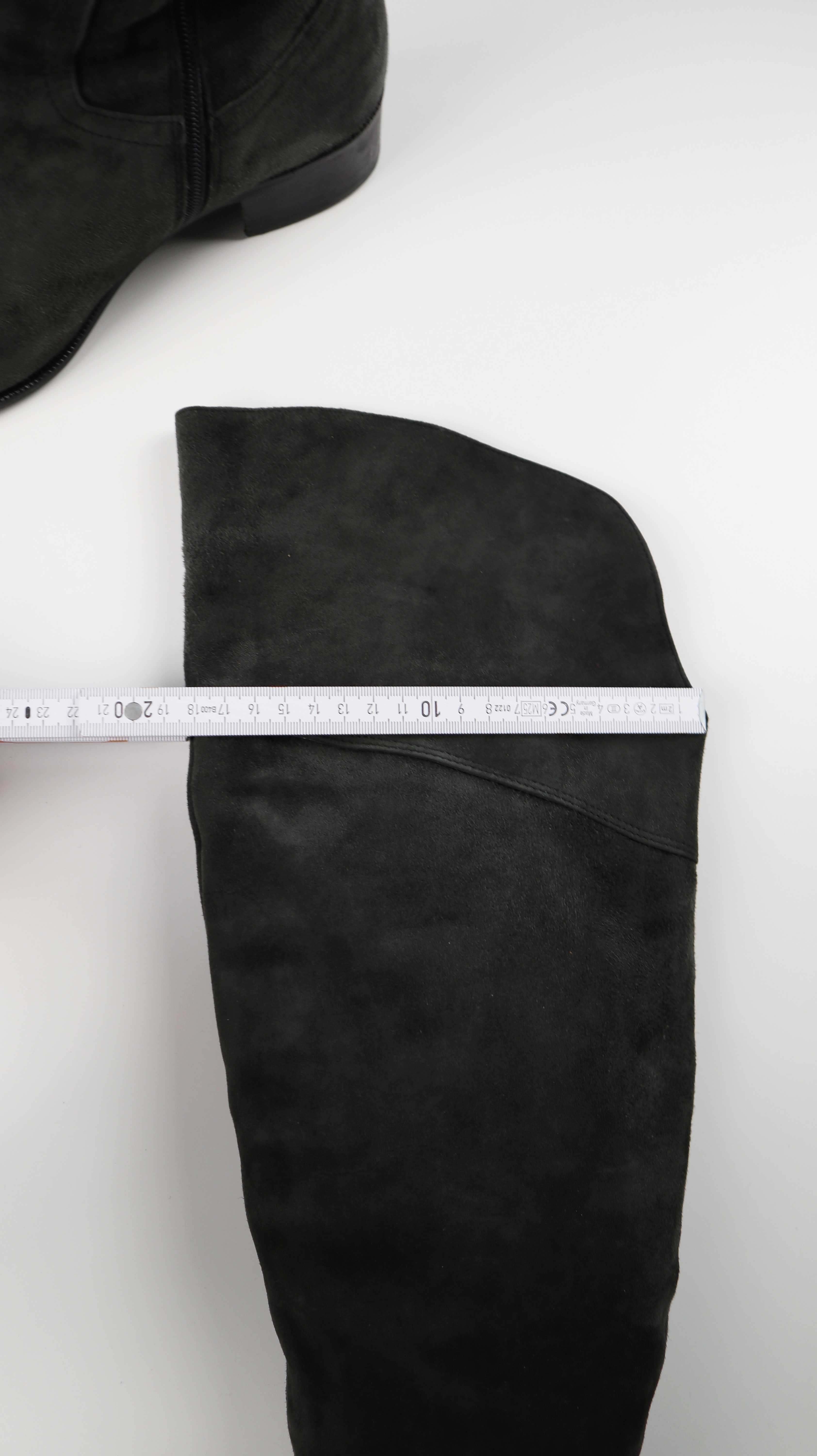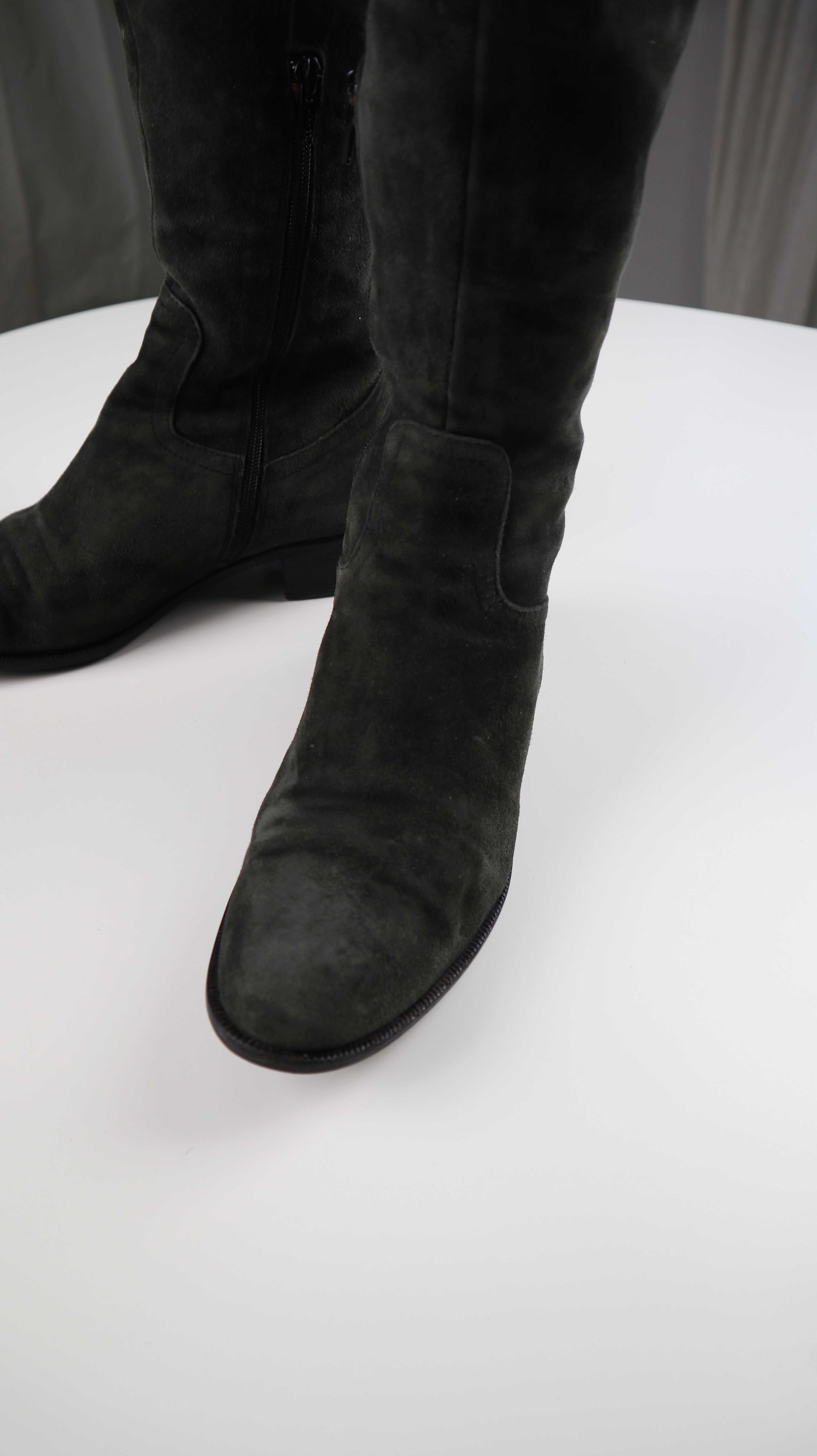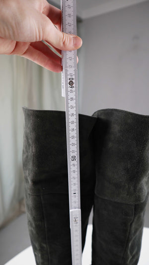 Lange, dunkelgrüne Stiefel aus Wildleder in 39. Plus Versand