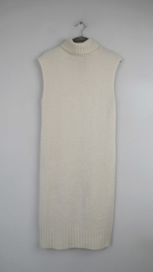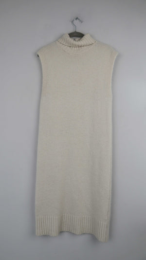 Langes Strickkleid ohne Marke in Creme. 42 cm Achselweite und 100 cm Länge. Plus Versand