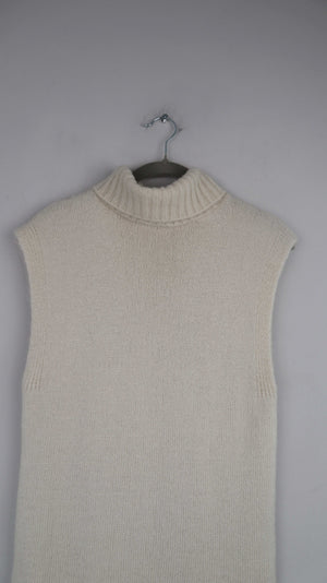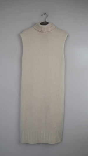 Strickkleid Pullover Beige Creme lang basic einfarbig Rollkragen 38 M