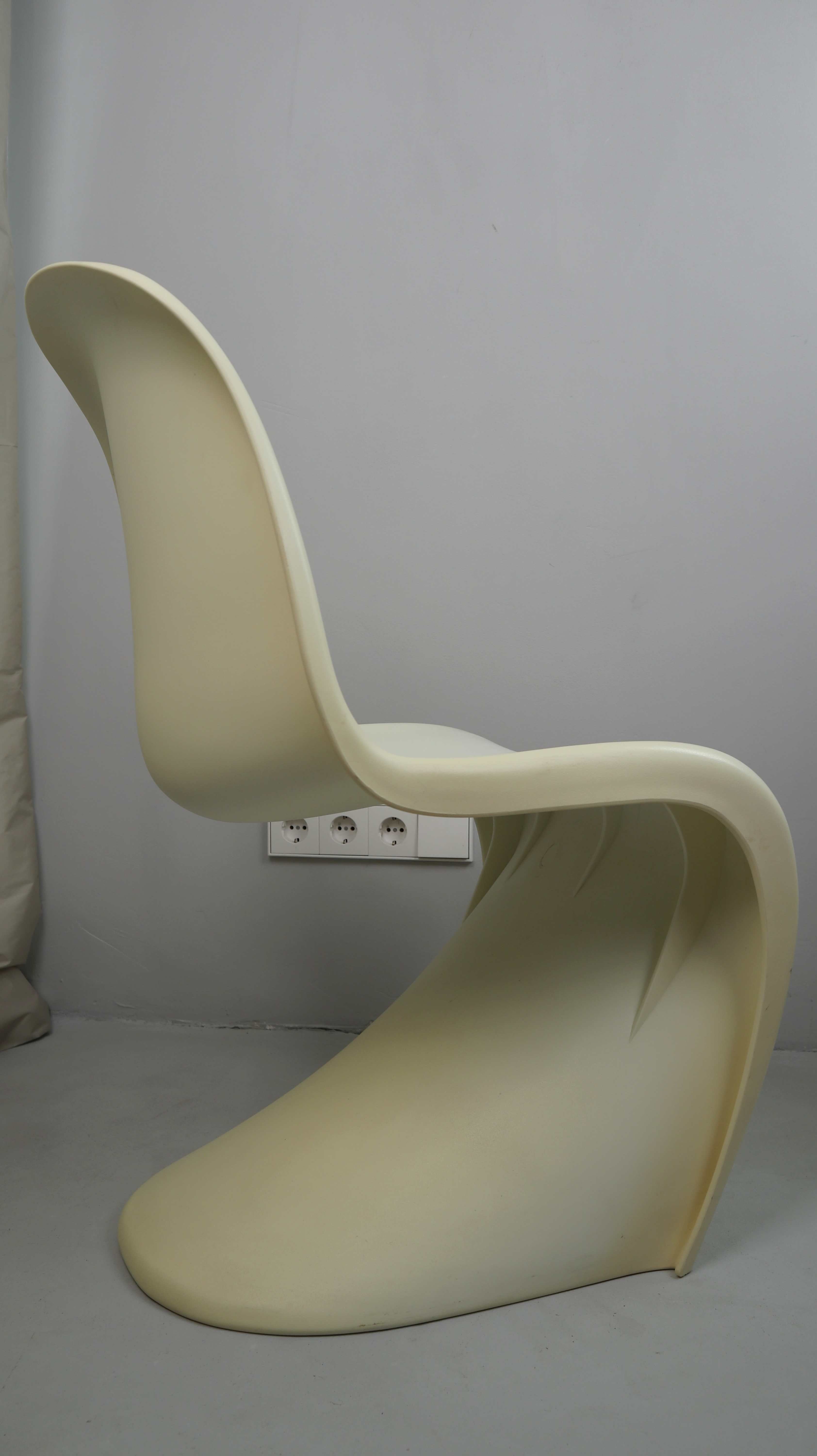 Beiger Stuhl im Stil von Verner Panton. Er ist leicht gelblich. Plus Versand oder Abholung
