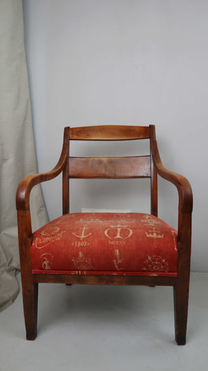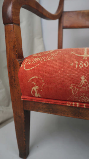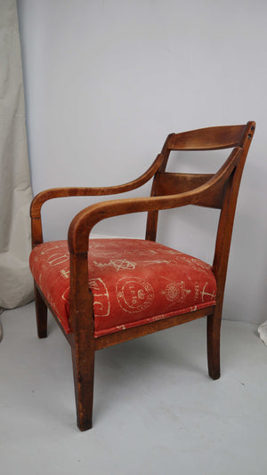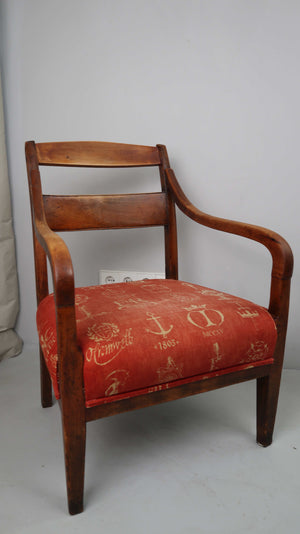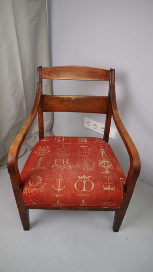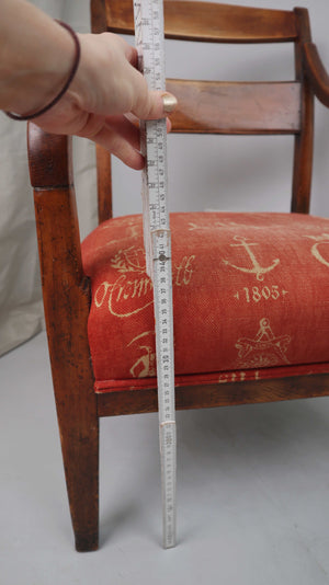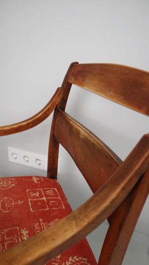 Stuhl Polsterstuhl Armlehne Regency Federpolsterung Rot Braun Holzstuhl Biedermeier