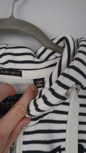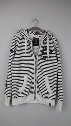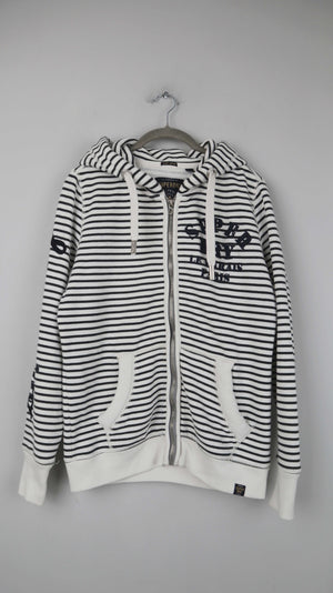 Superdry Strickjacke Hoodie Zipper schwarz weiß gestreift L Kapuze