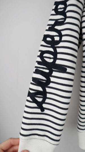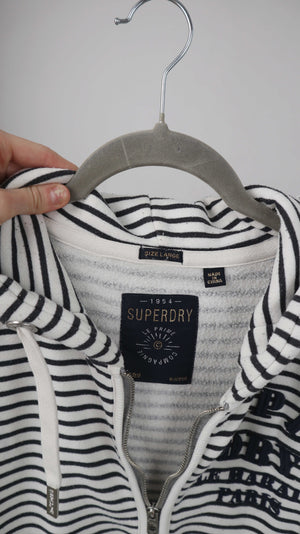 Schwarz weiß gestreifter Zipper von Superdry in L. Ganz leichtes Peeling. 53 cm Achselweite und 61 cm Länge. Plus Versand