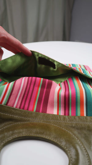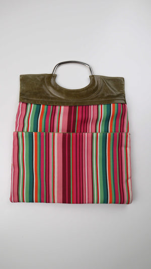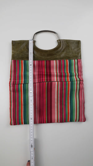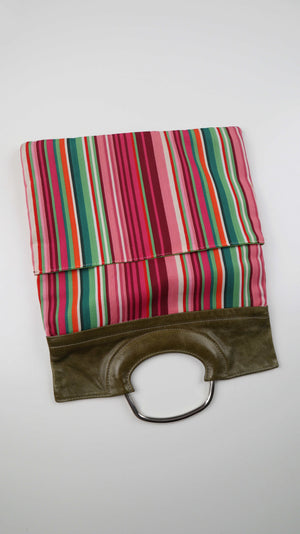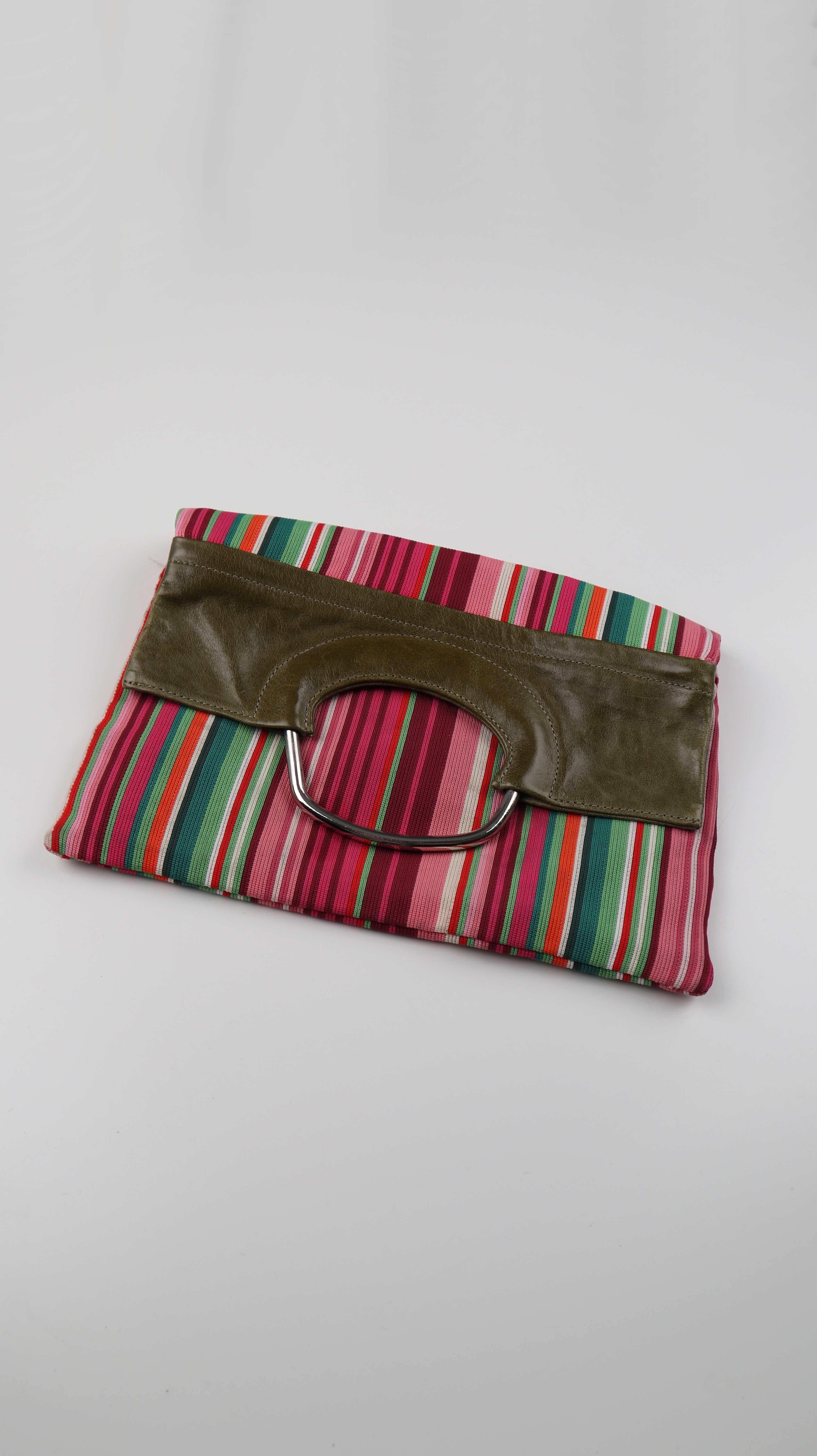 Tasche Clutch Gestreift rosa grün Handtasche Ledertasche 90s