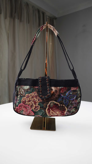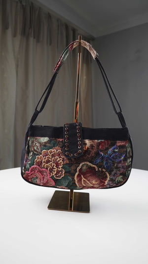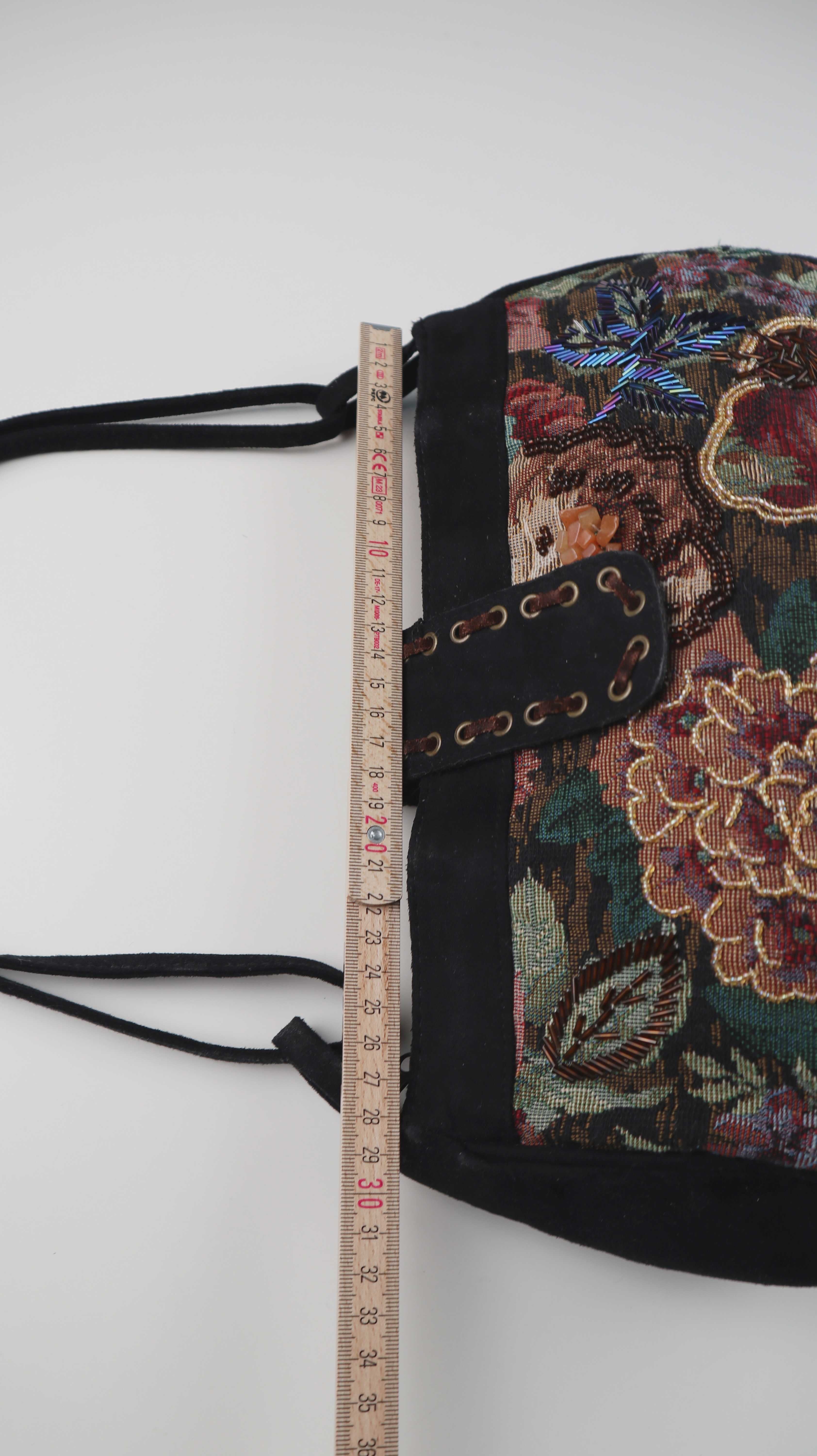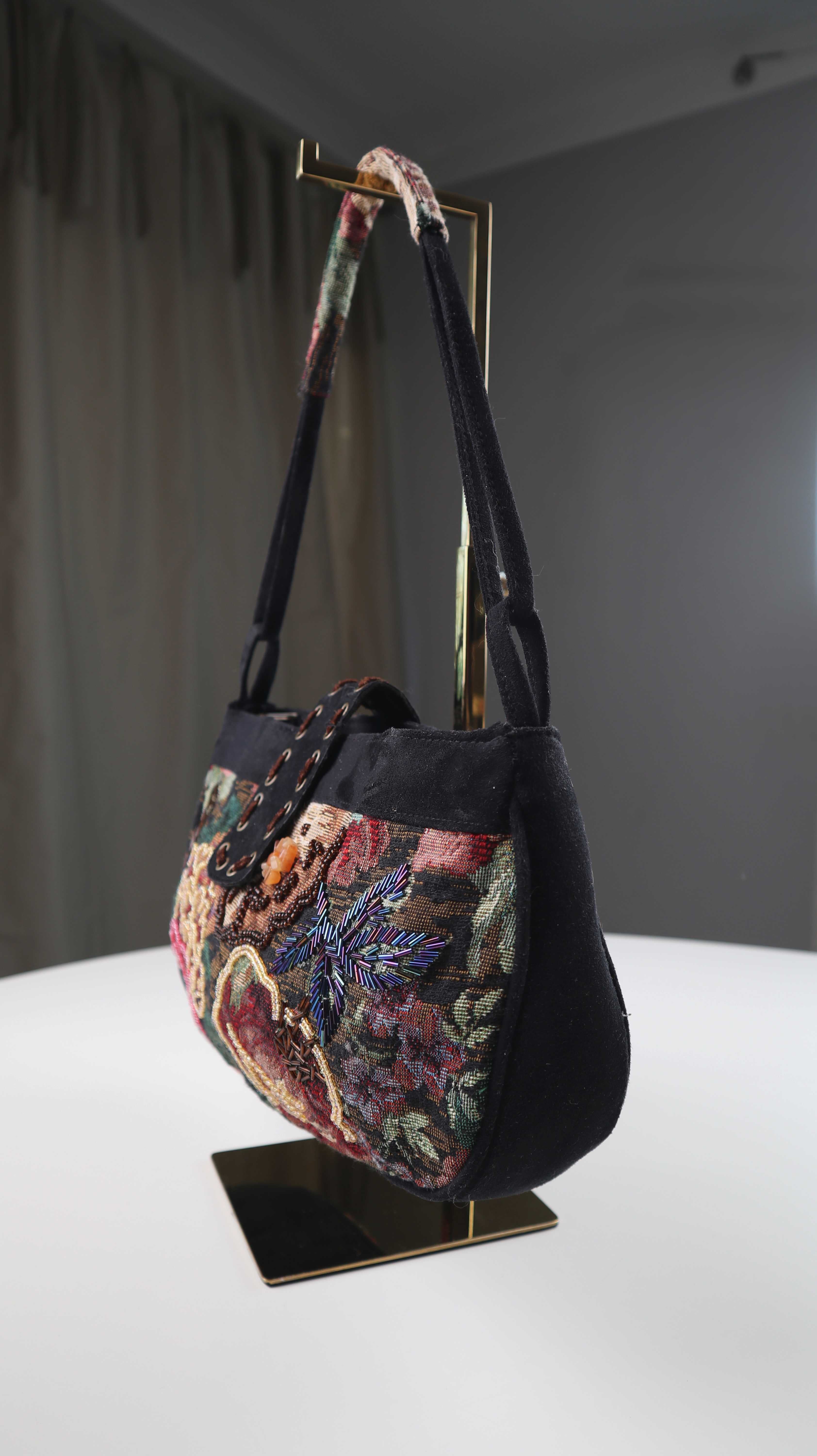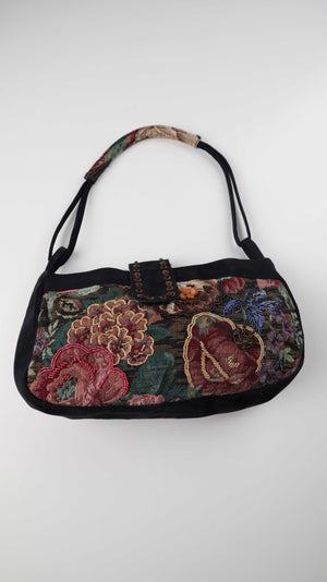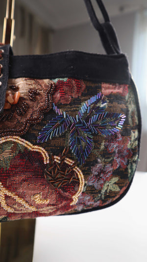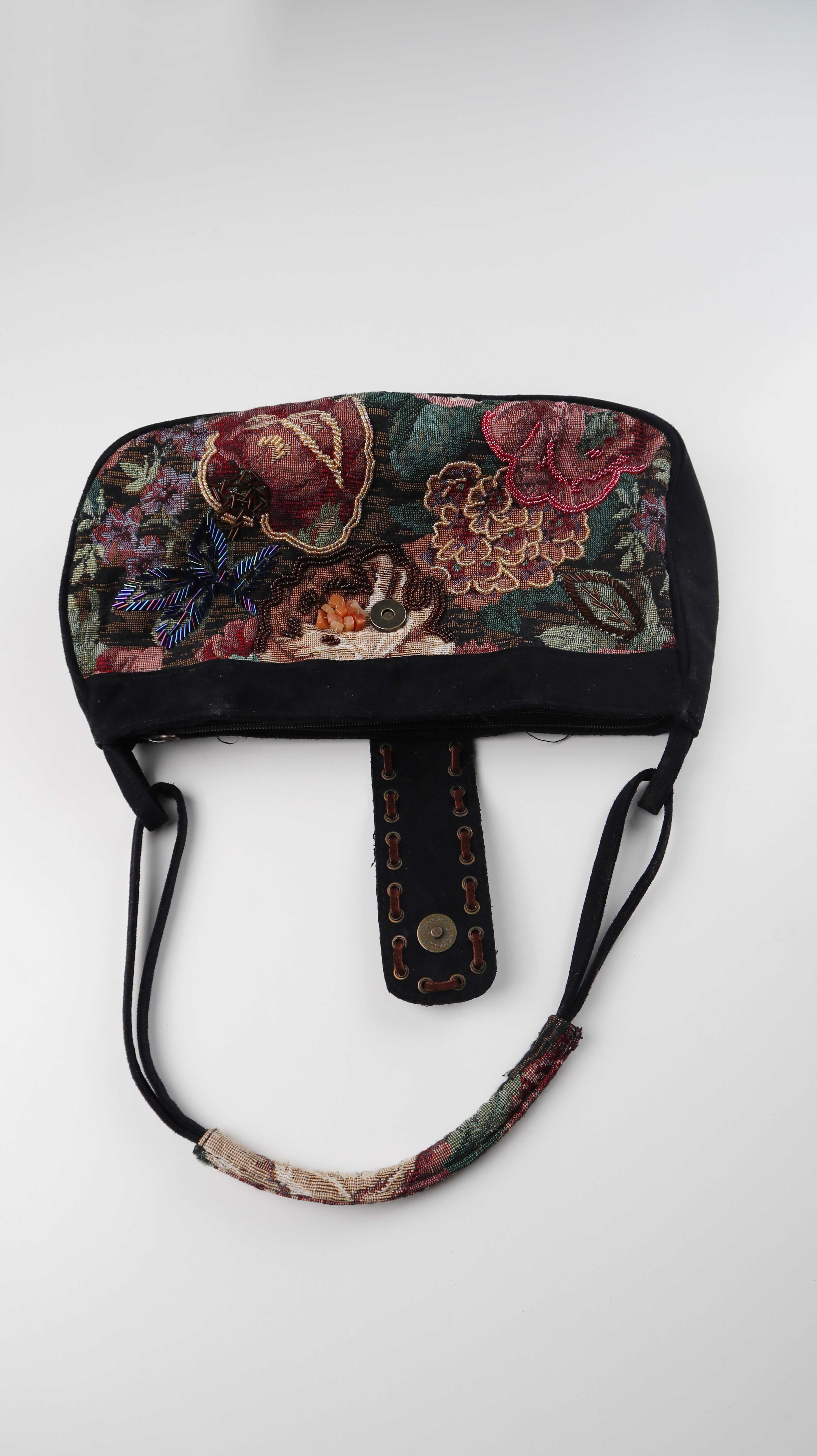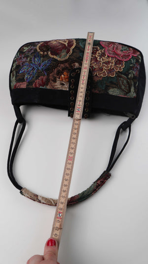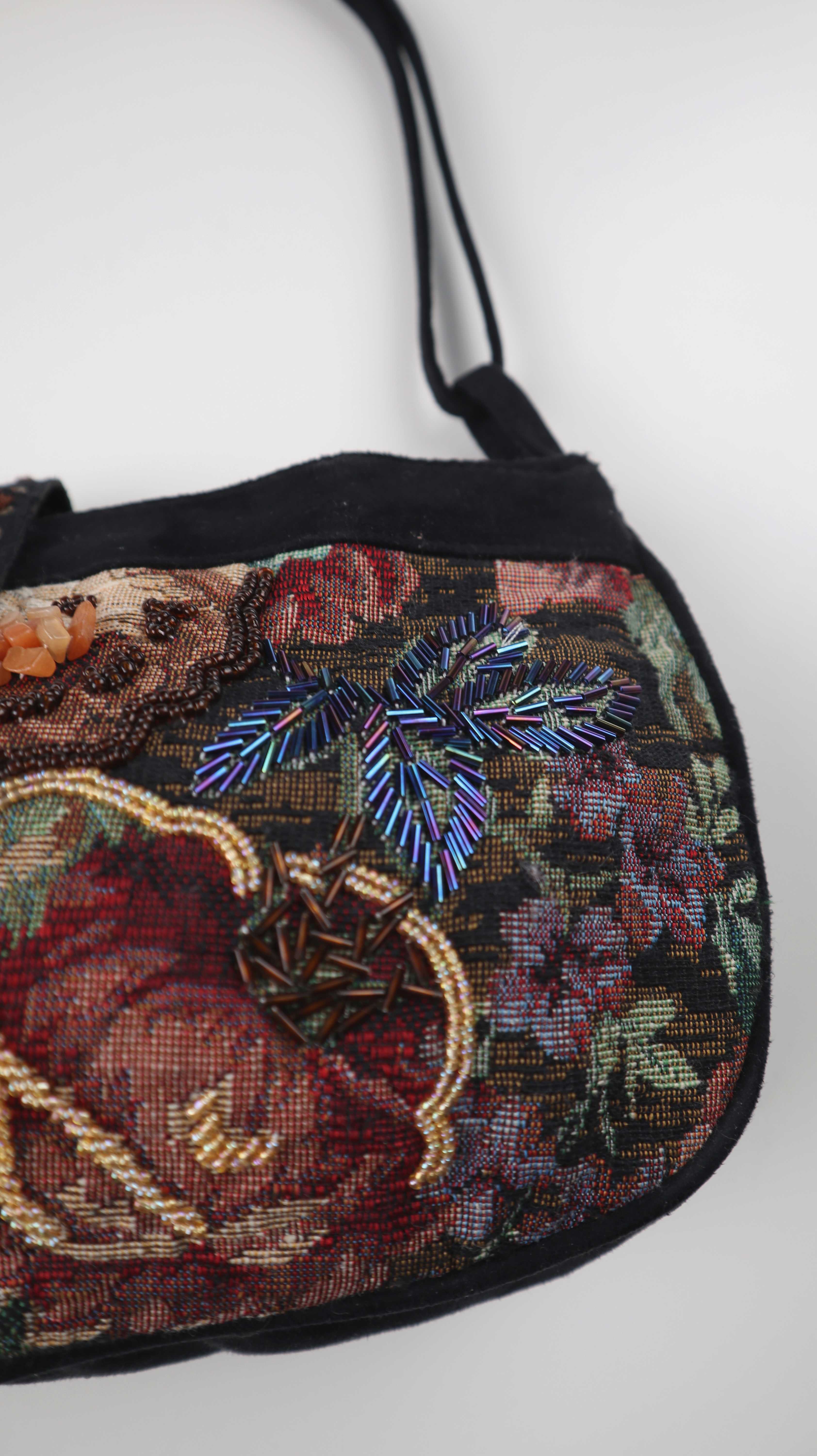 Tasche Damenhandtasche Baguette bag bestickt schwarz Perlen bunt Vintage