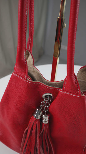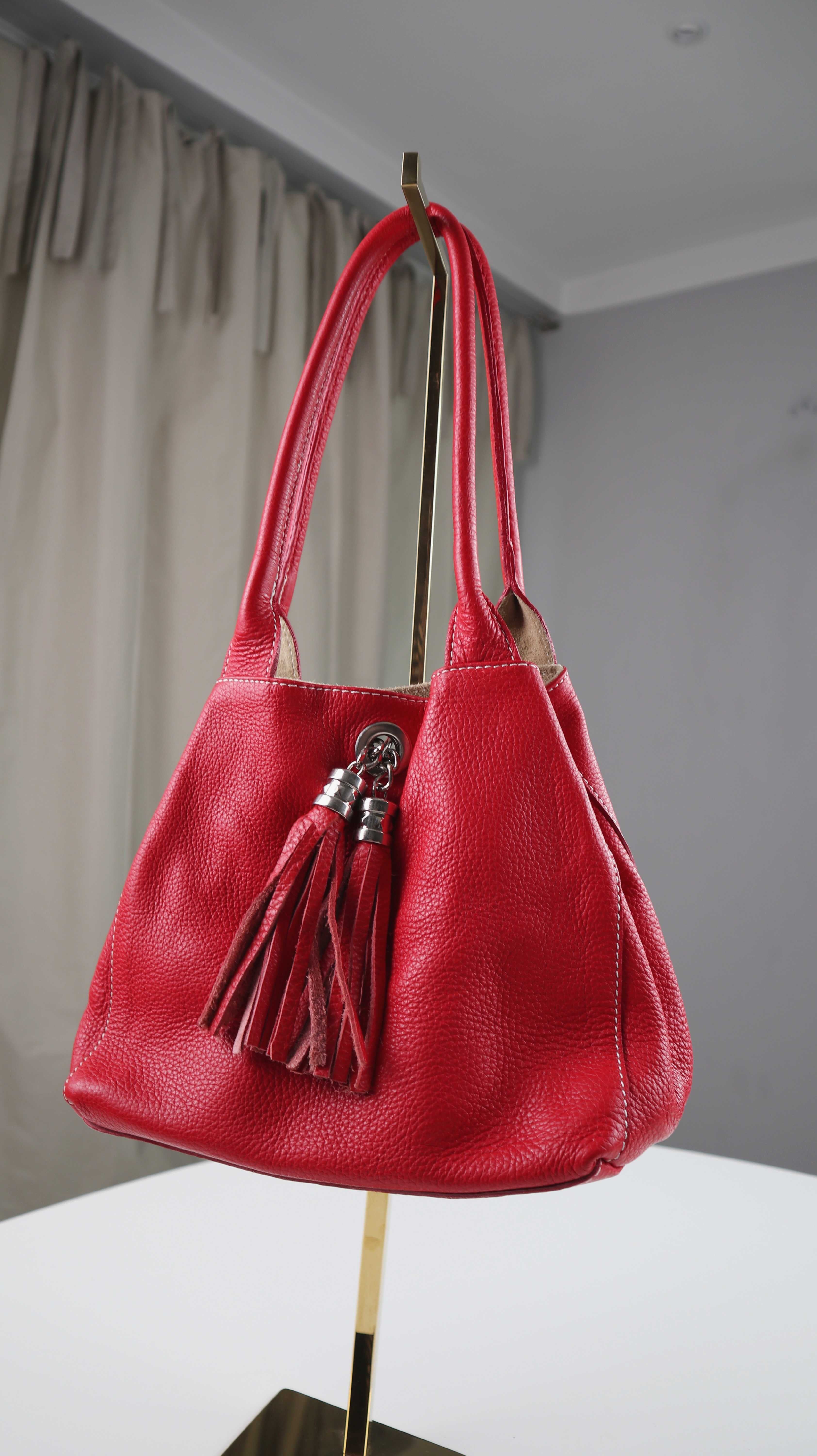 Tasche Ledertasche rot minitasche Made in Italy klein Shopper Schultertasche