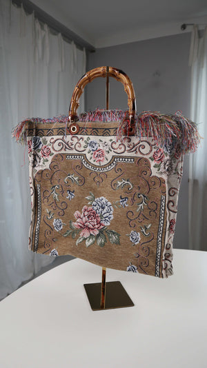 Tasche Shopper Neu Fransen Hippie Bohemian braun Muster Brokante Fransen