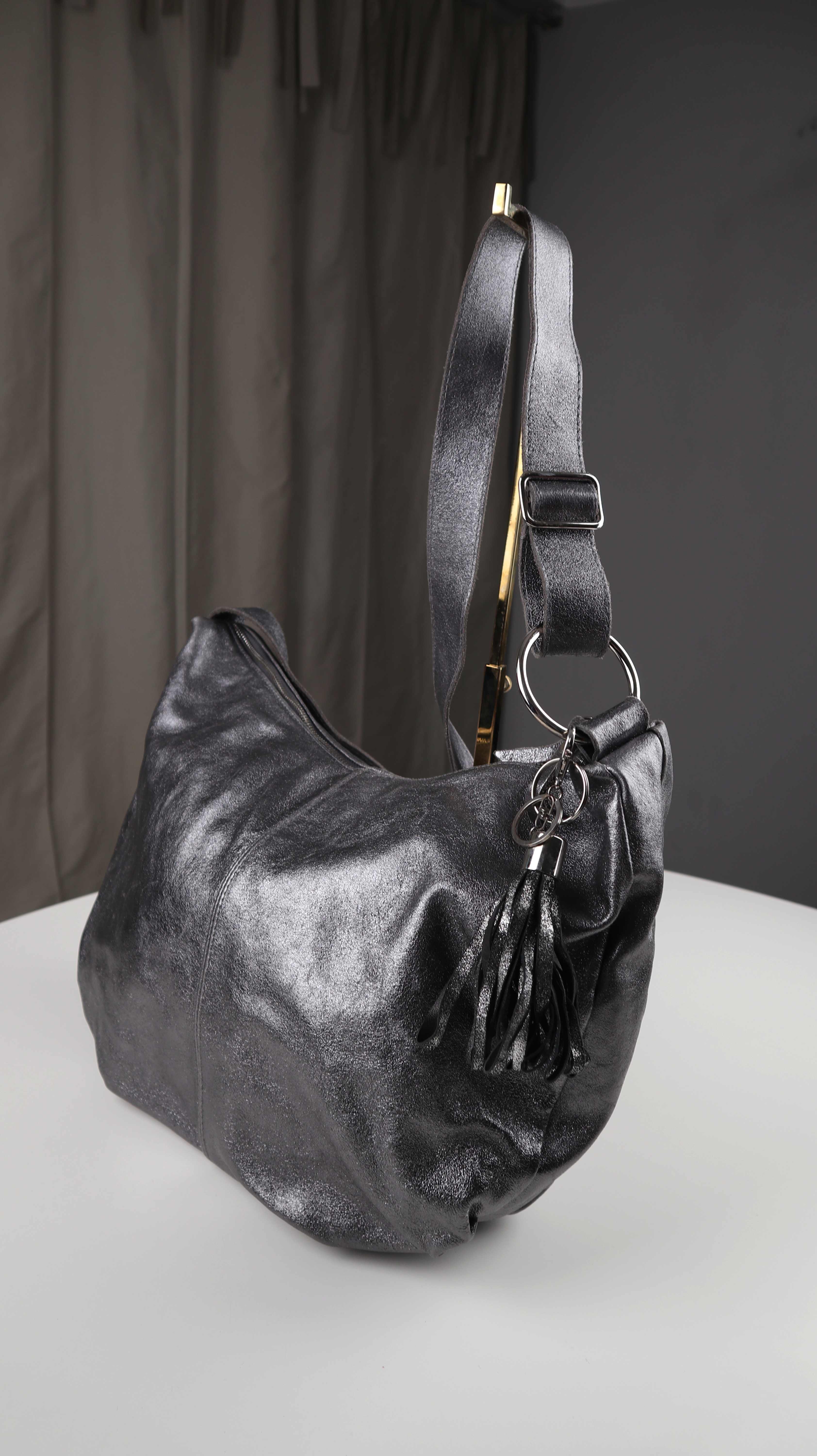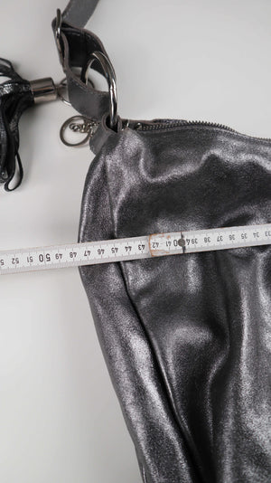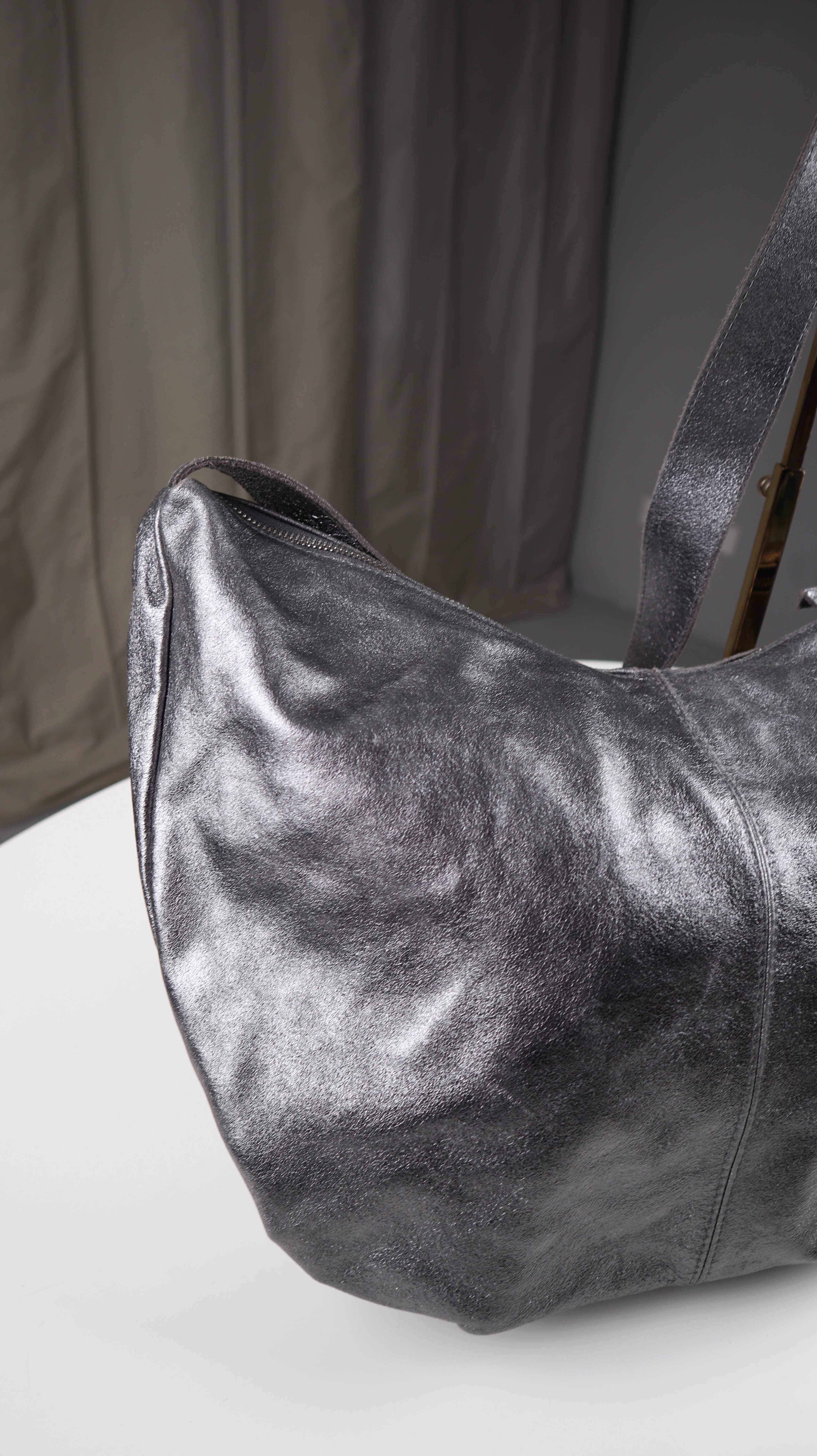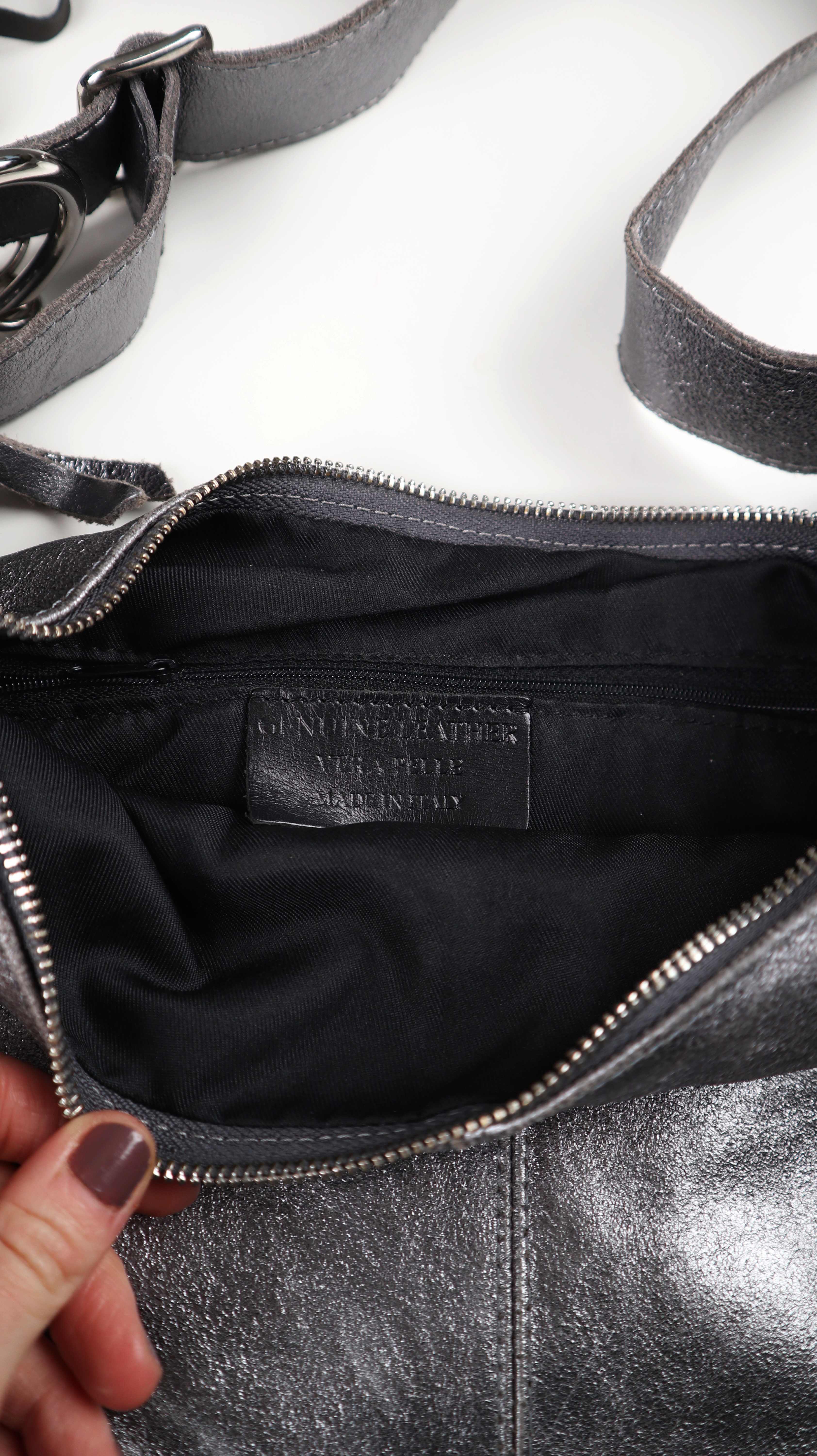 Tasche silber Metallic made in italy Umhängetasche Chrom Ledertasche Shopper