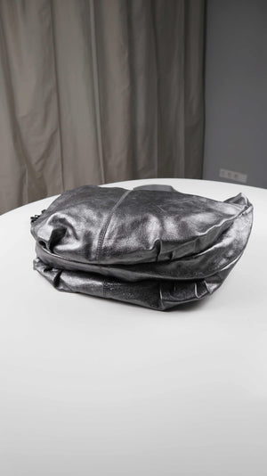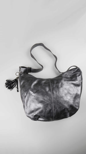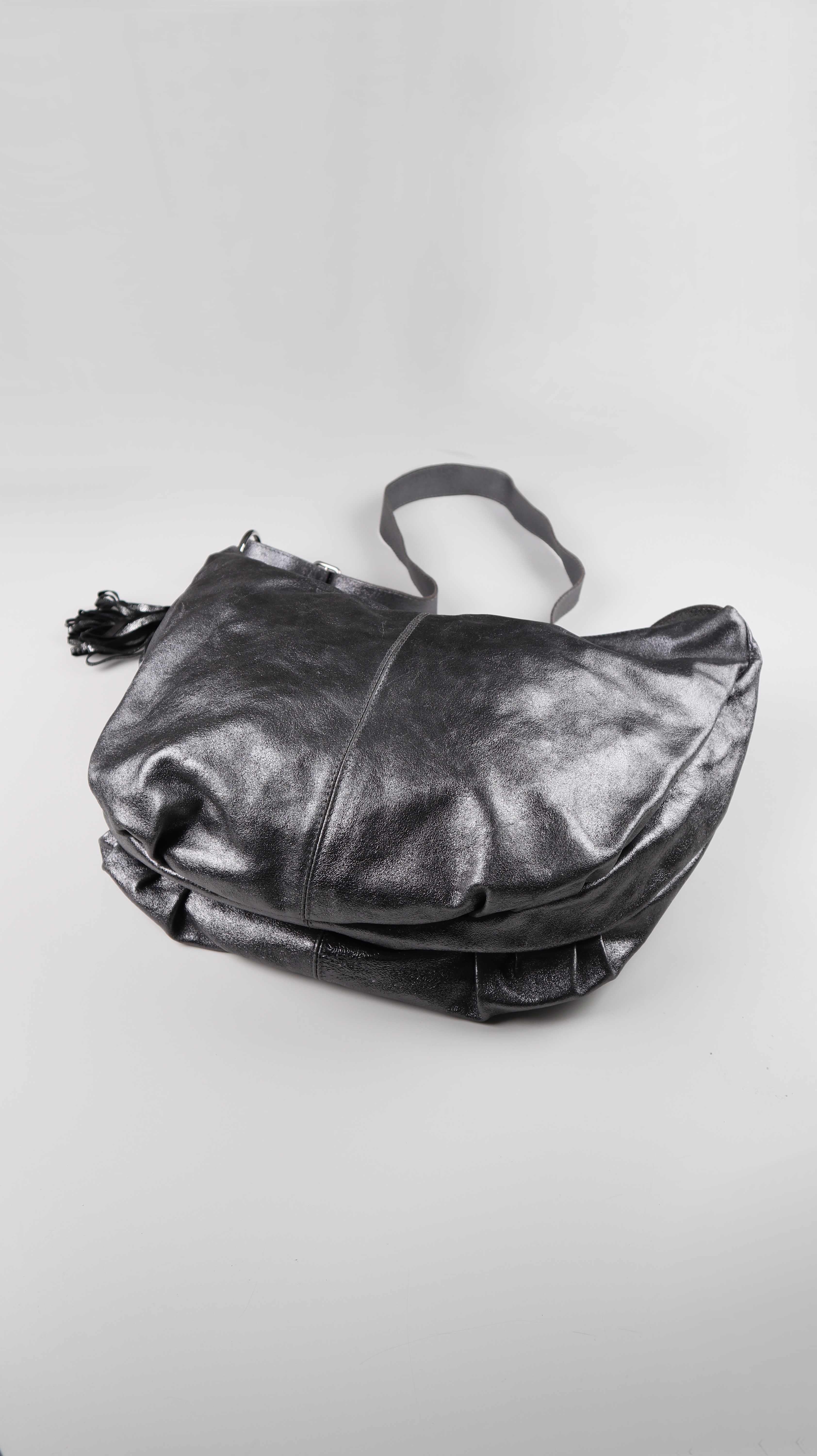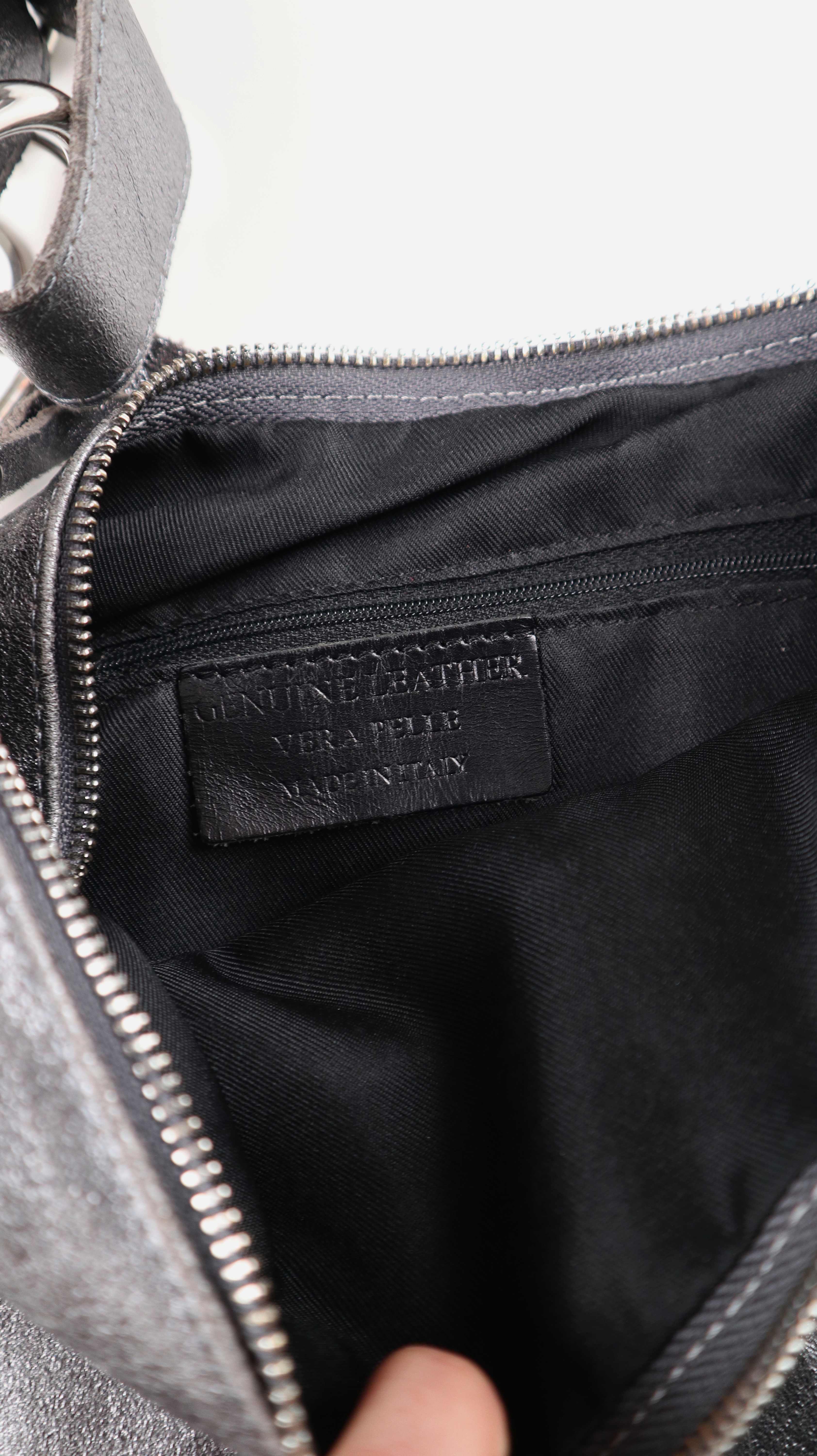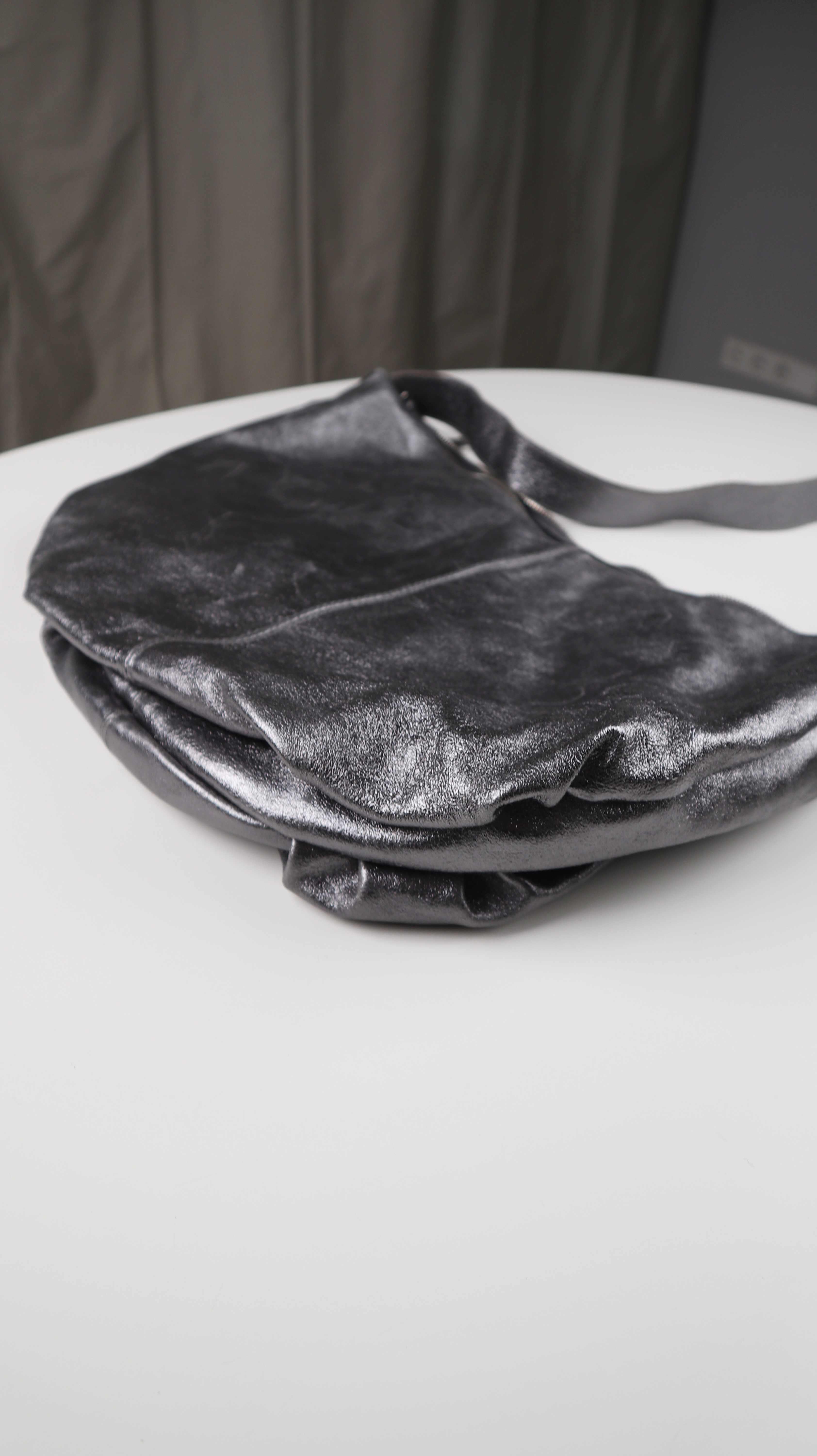 Tasche silber Metallic made in italy Umhängetasche Chrom Ledertasche Shopper