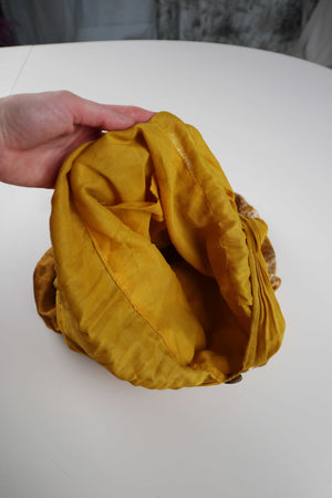 Kleine gelbe Beuteltasche mit Paisleymuster. Plus Versand