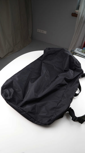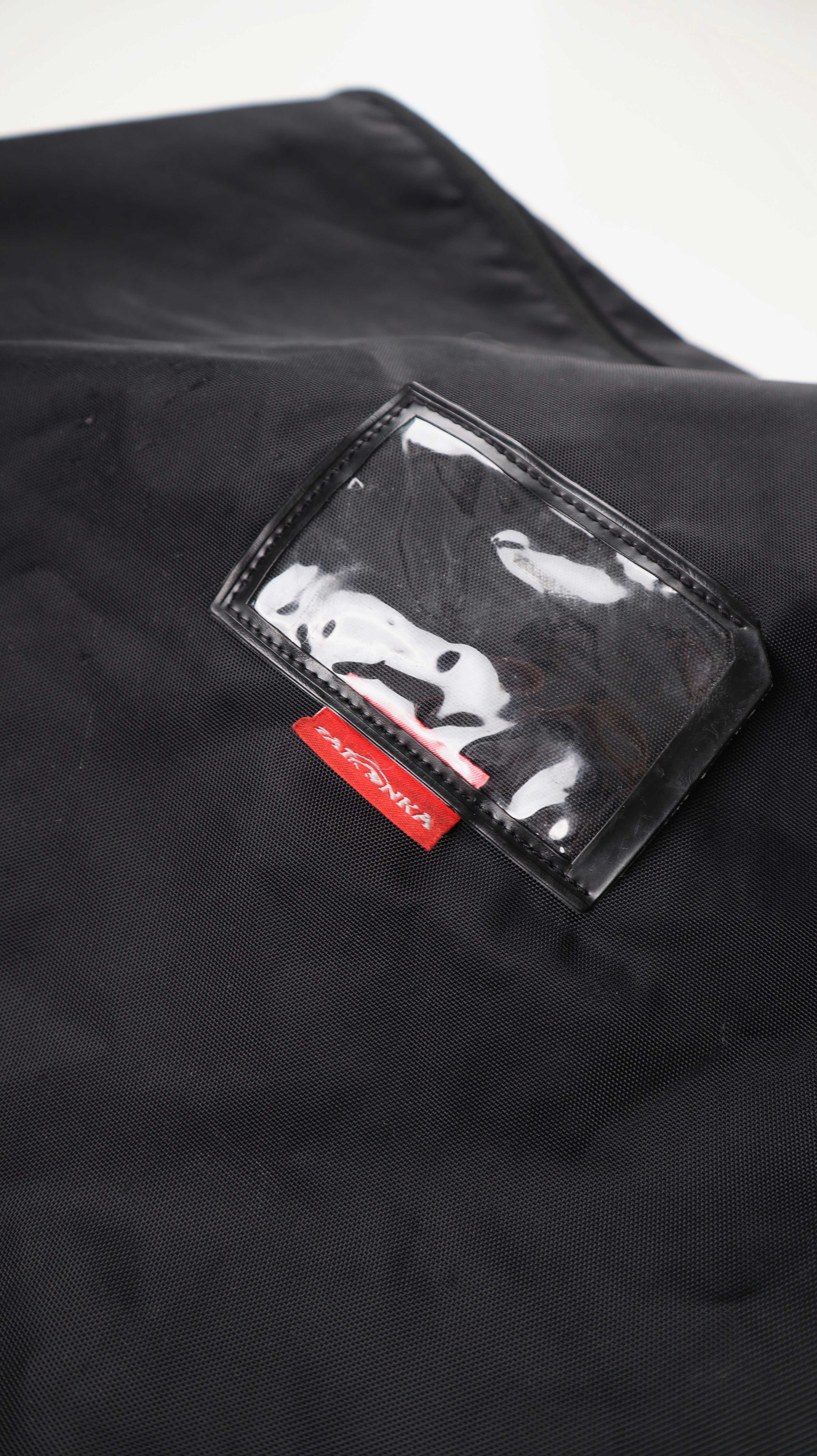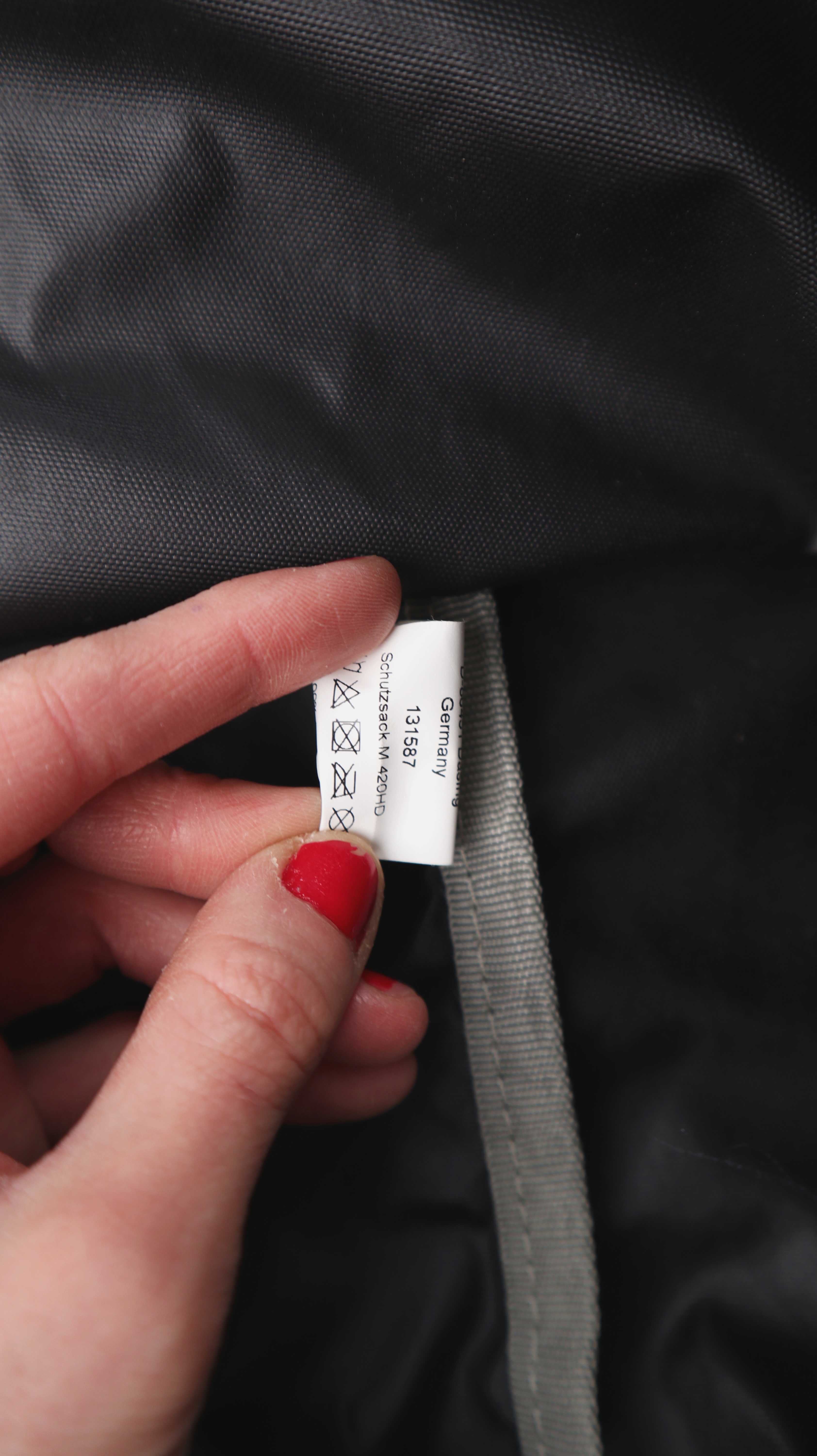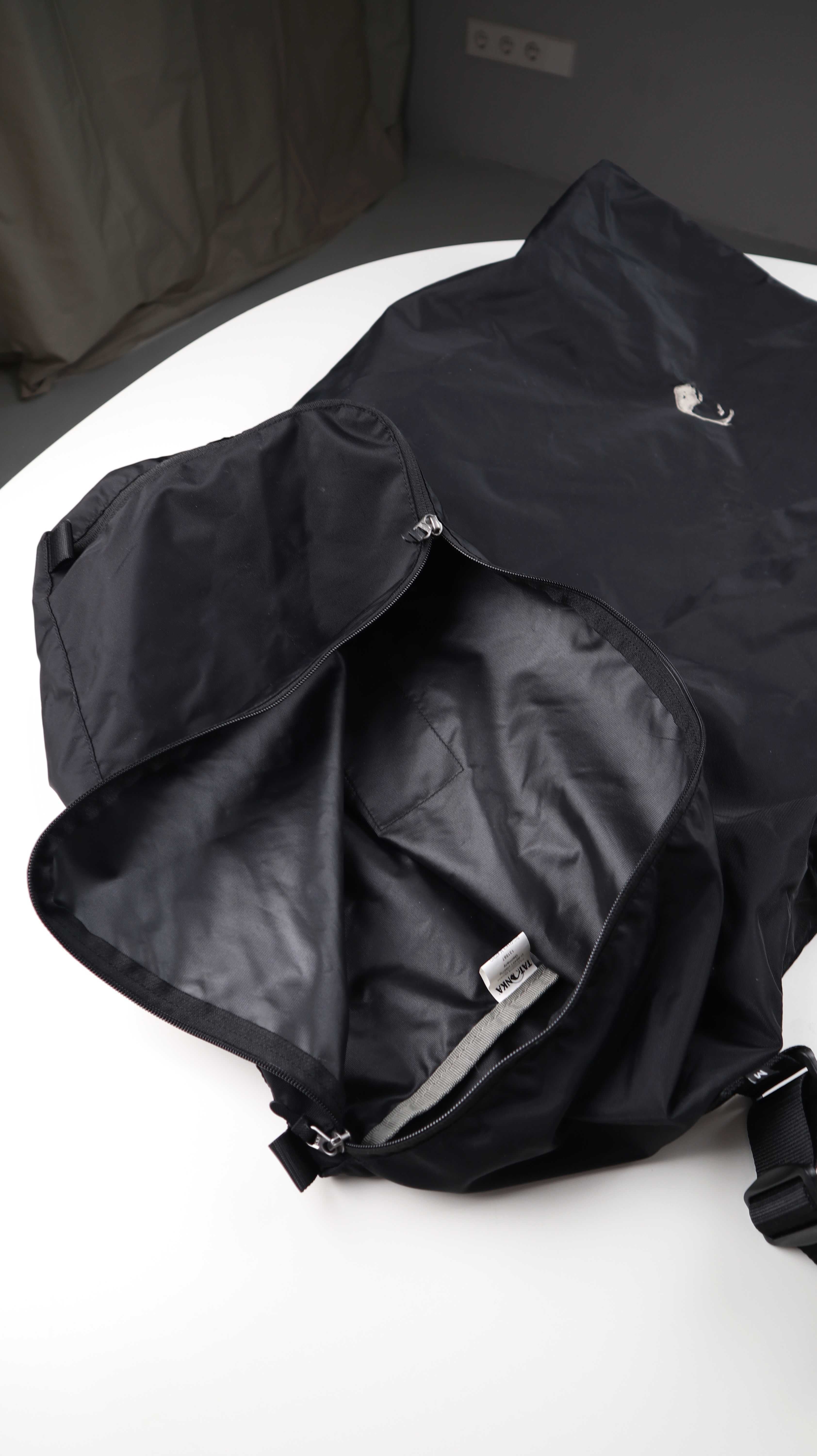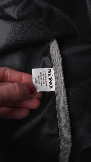 Große schwarze Schutzhülle von Tatonka. Sie ist aus Nylon, leicht genutzt, kann in der Maschine gewaschen werden und dient als Schutzhülle für einen großen Rucksack / Reisetasche. Plus Versand