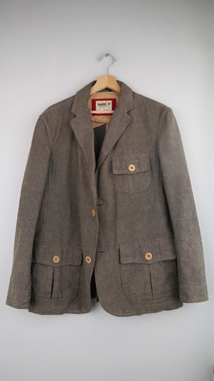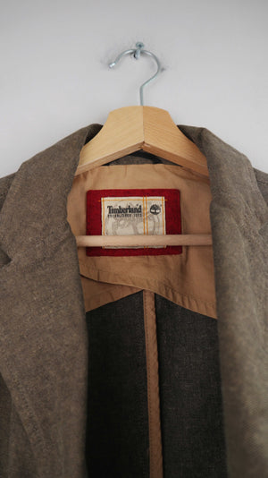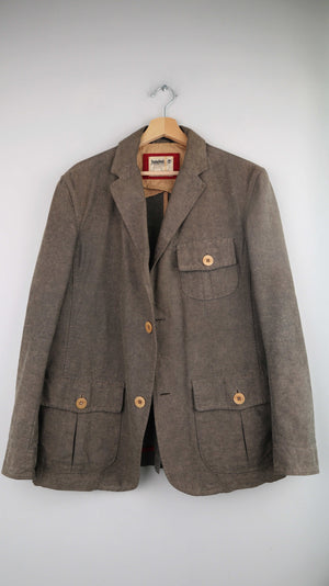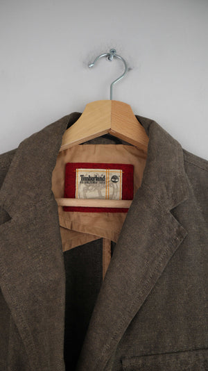 Brauner Blazer von Timberland in M. Leder ist im Nacken. 48 cm Achselweite und 70 cm Länge. Plus Versand