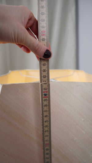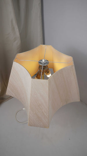 Überdimensional große Tischlampe mit einem gemütlichen Licht und einem Schirm in einer besonderen Form. Plus Versand