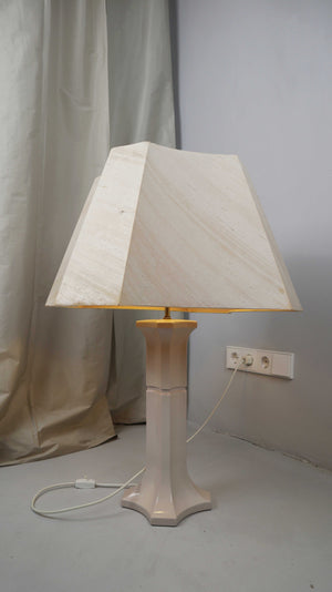 Tischleuchte Tischlampe Creme Beige groß Porzellanlampenfuß Retro Vintage