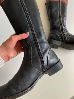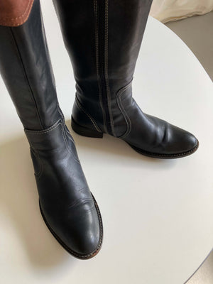 Tommy Hilfiger Stiefel 39 Schwarz Braun Lederstiefel hoch lang