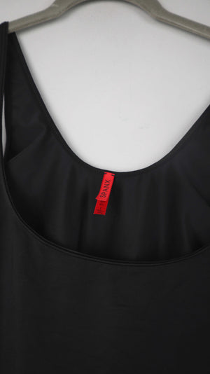 Schwarzes Top in 40 L, vorne ausgeschnitten, zum stillen. 37 cm Bundweite und 41 cm Länge. Plus Versand