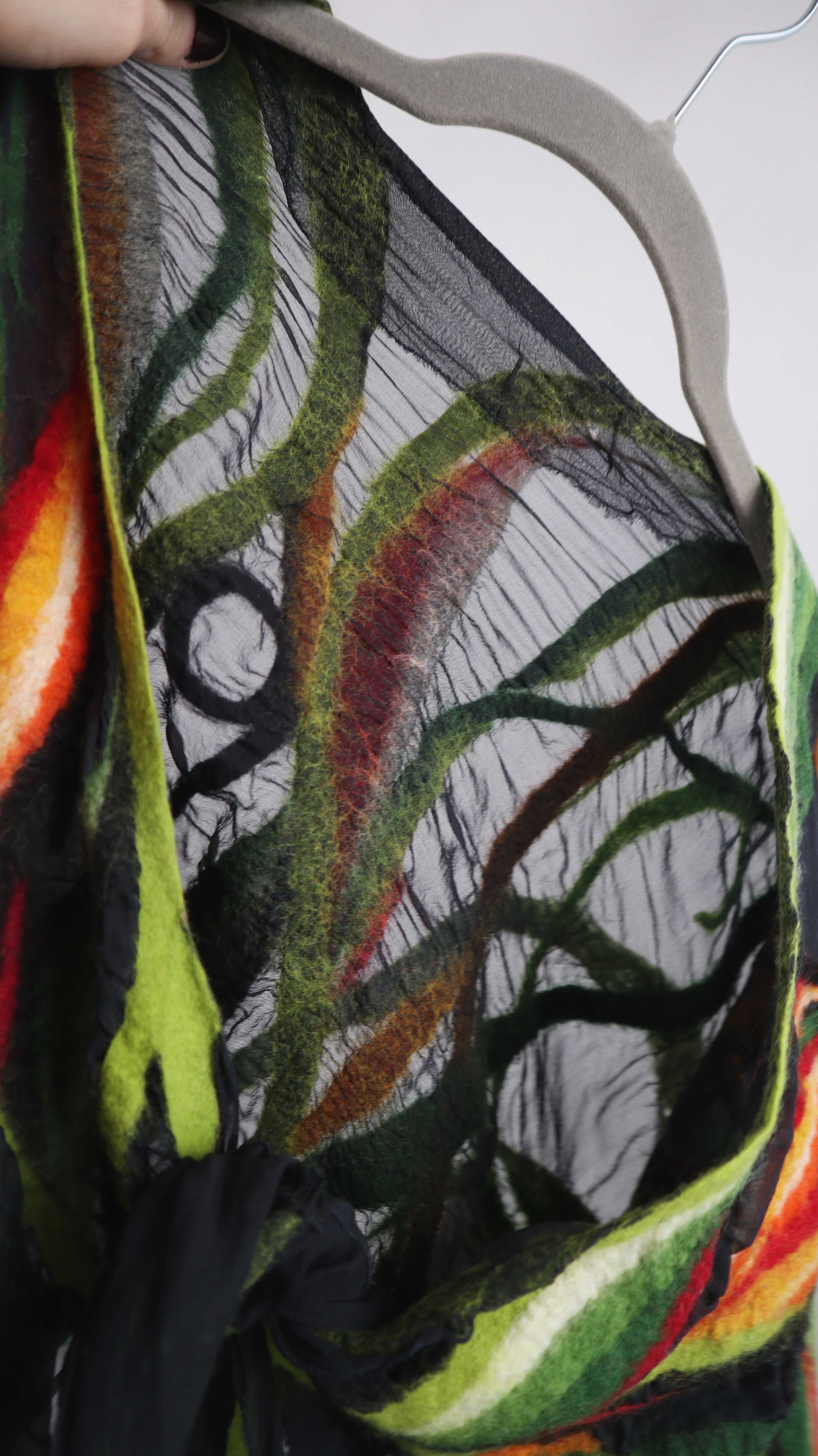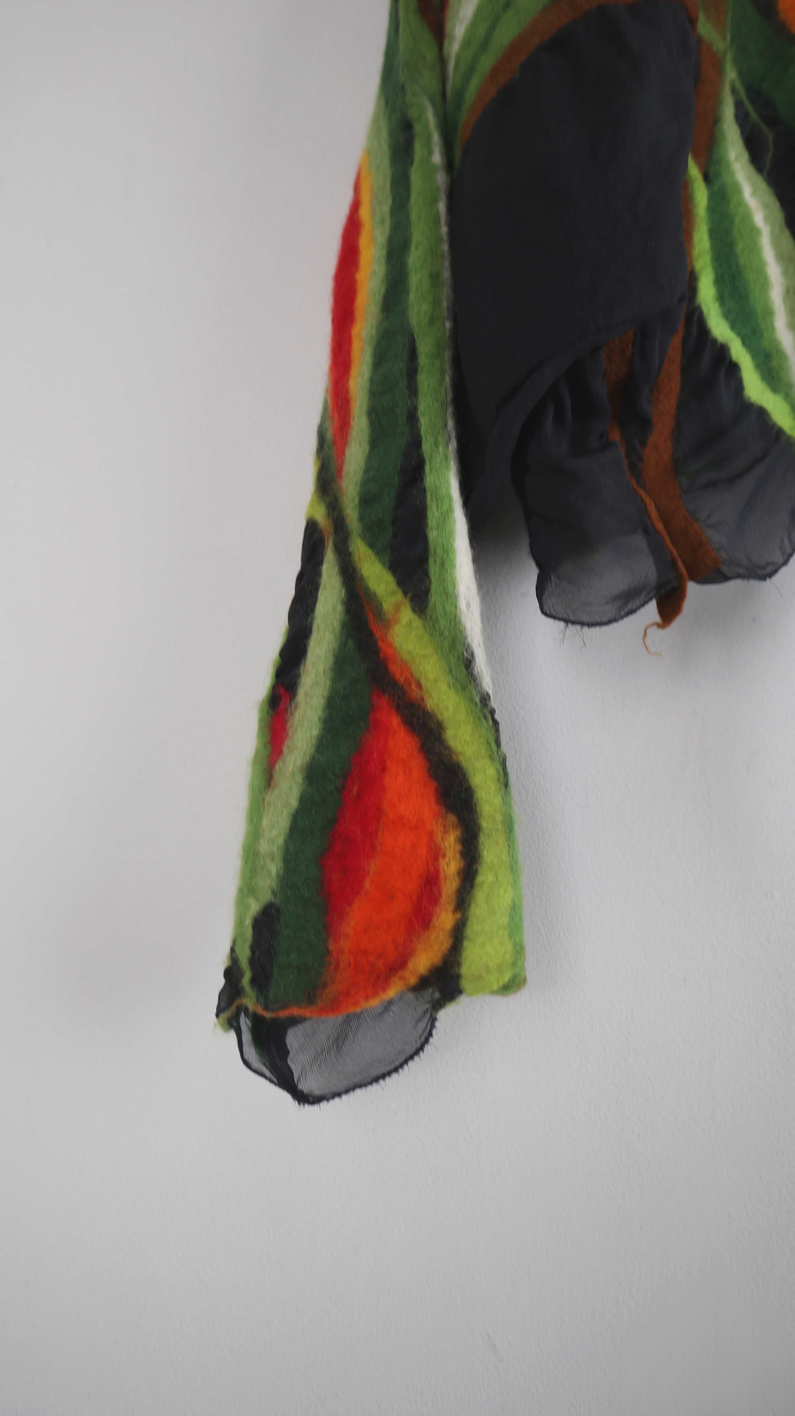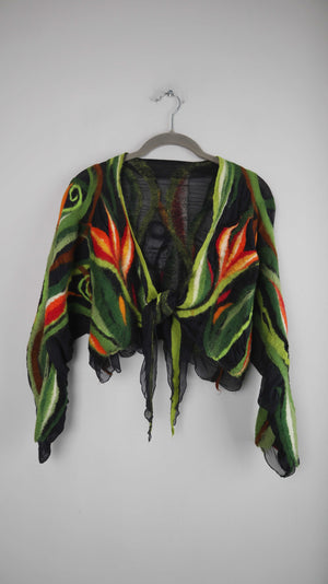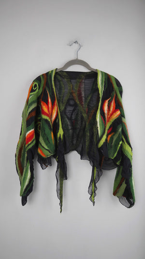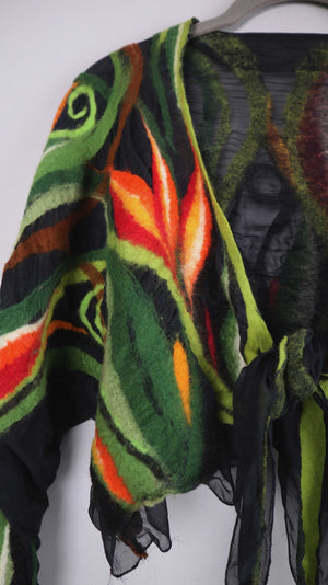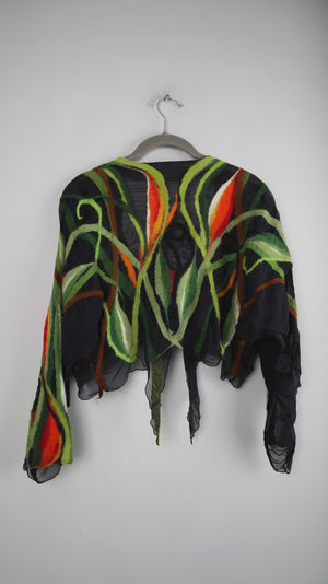Top Weste Grün gefilzt Filztop Bolero Cardigan Strickjacke Orange