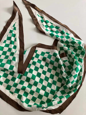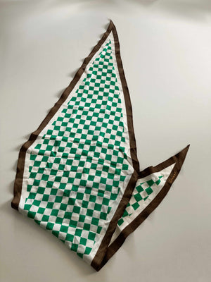 Tresse Tuch Seidentuch Kopftuch grün kariert braun Silk französisch