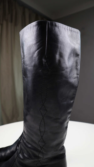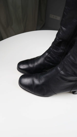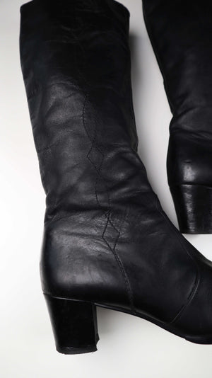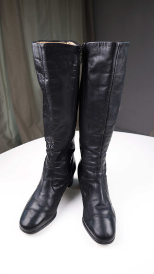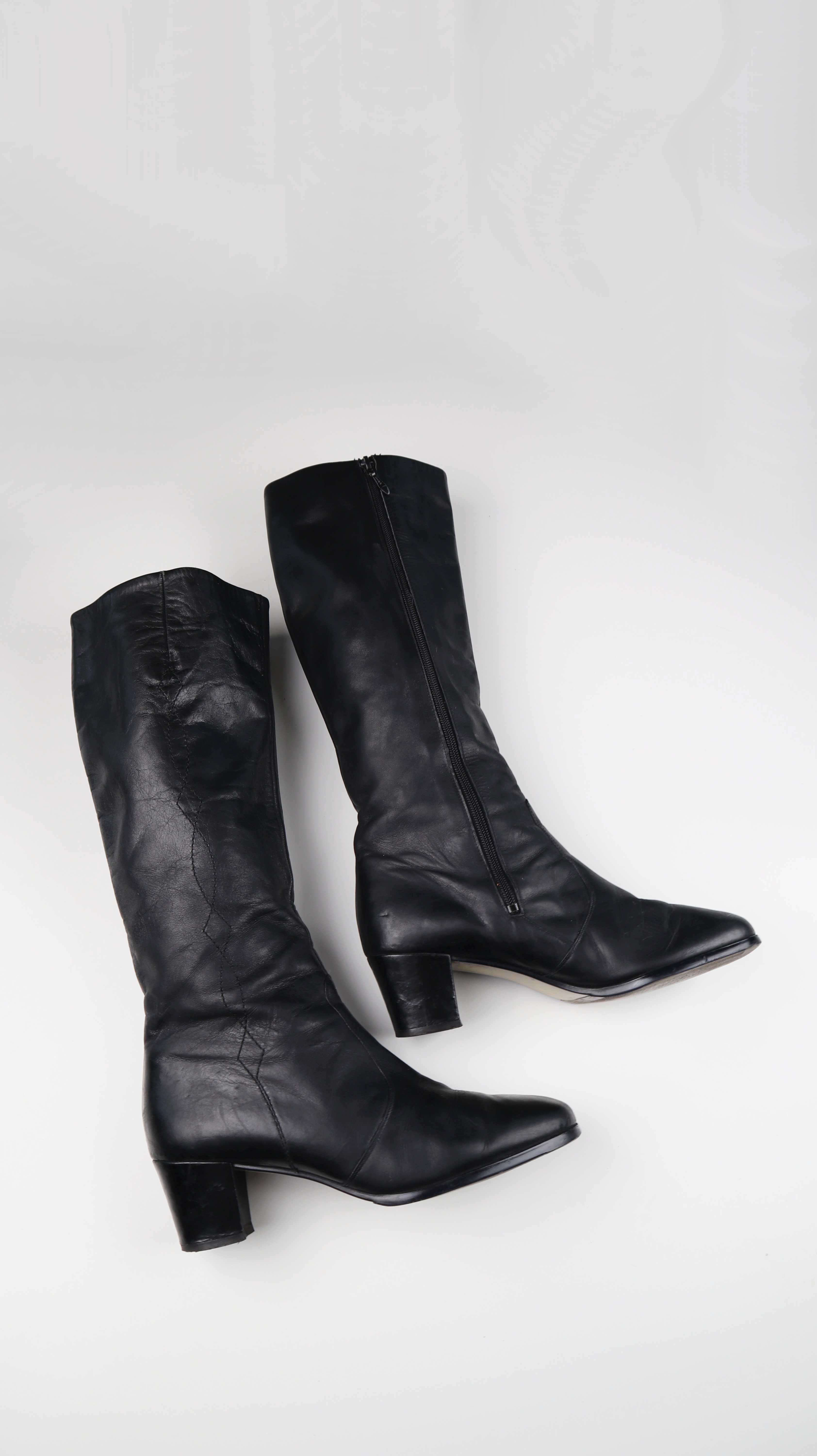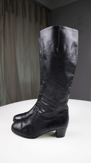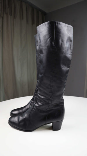 True Vintage Ara Stiefel schwarz 39 Leder Lederstiefel lang Absatz