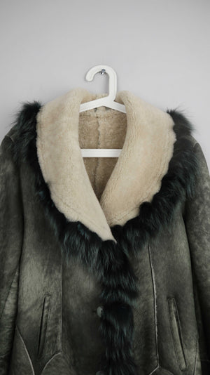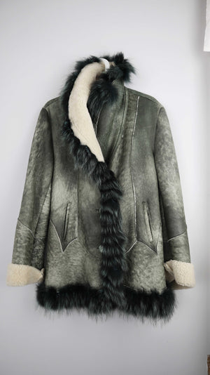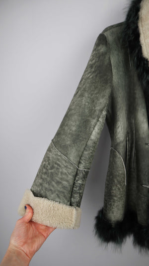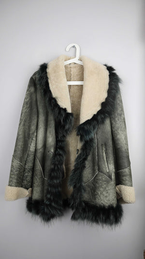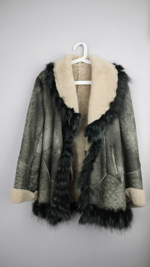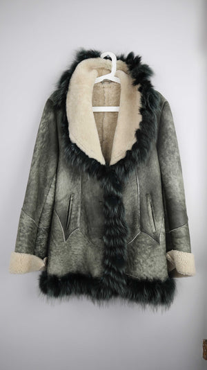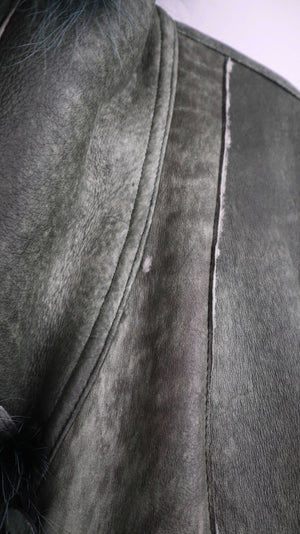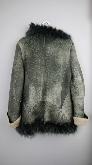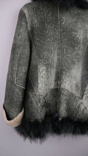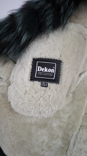 True Vintage Dekon Lederjacke Lammfelljacke Grün Dunkelgrün 38 M