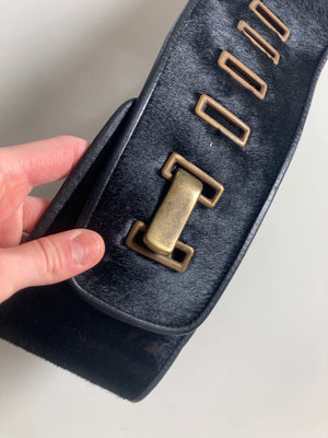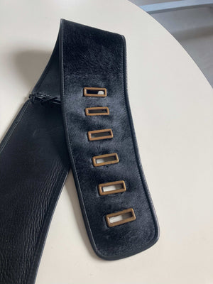True Vintage Gürtel Hüftgürtel 80er Fell Leder Ledergürtel verstellbar Talliengürtel