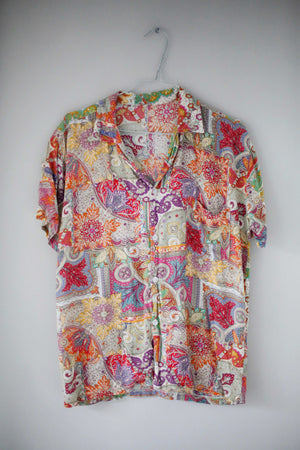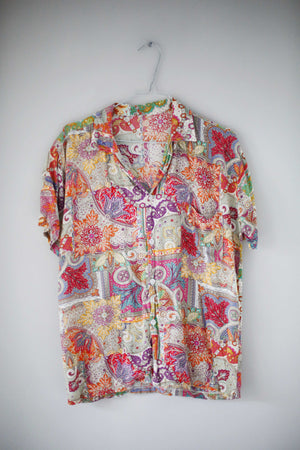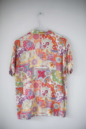 True Vintage Hemd paisley M bunt bedruckt Sommerhemd Flatterhemd