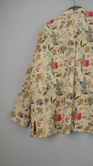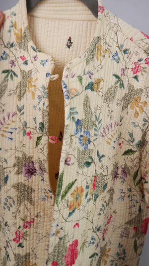 True Vintage Jacke 38 M Wendejacke gesteppt Creme Beige Blumen