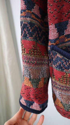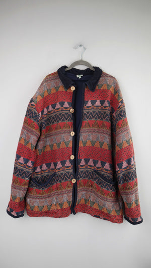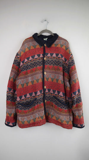 True Vintage Jacke Akzetenmuster XL L rot blau Manteljacke