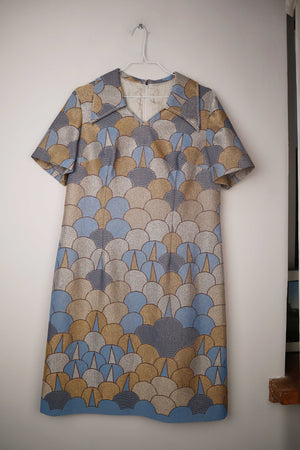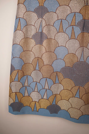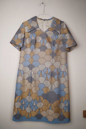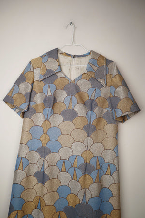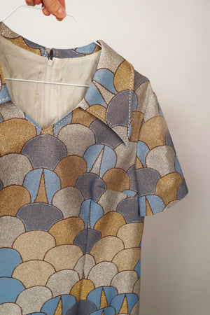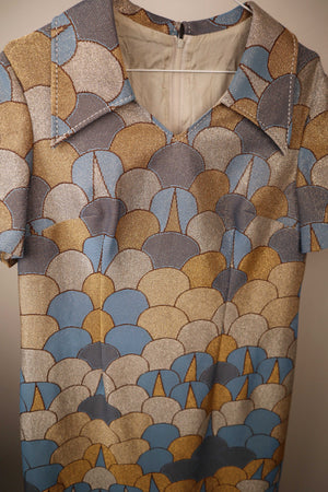True Vintage Kleid Midi Midikleid gold blau 38 M 70er 80er Etuikleid festlich