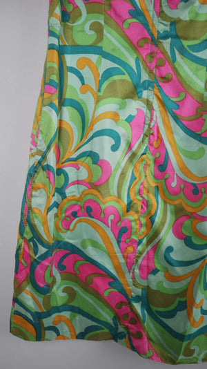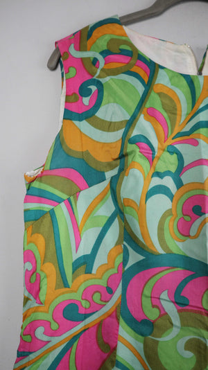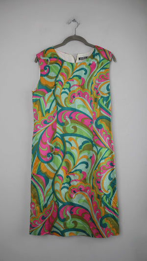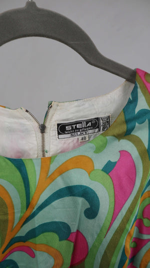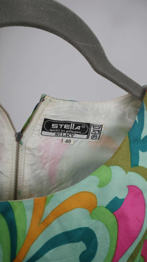 True Vintage Kleid Seide Retro Stella 40 L grün pink 38 M