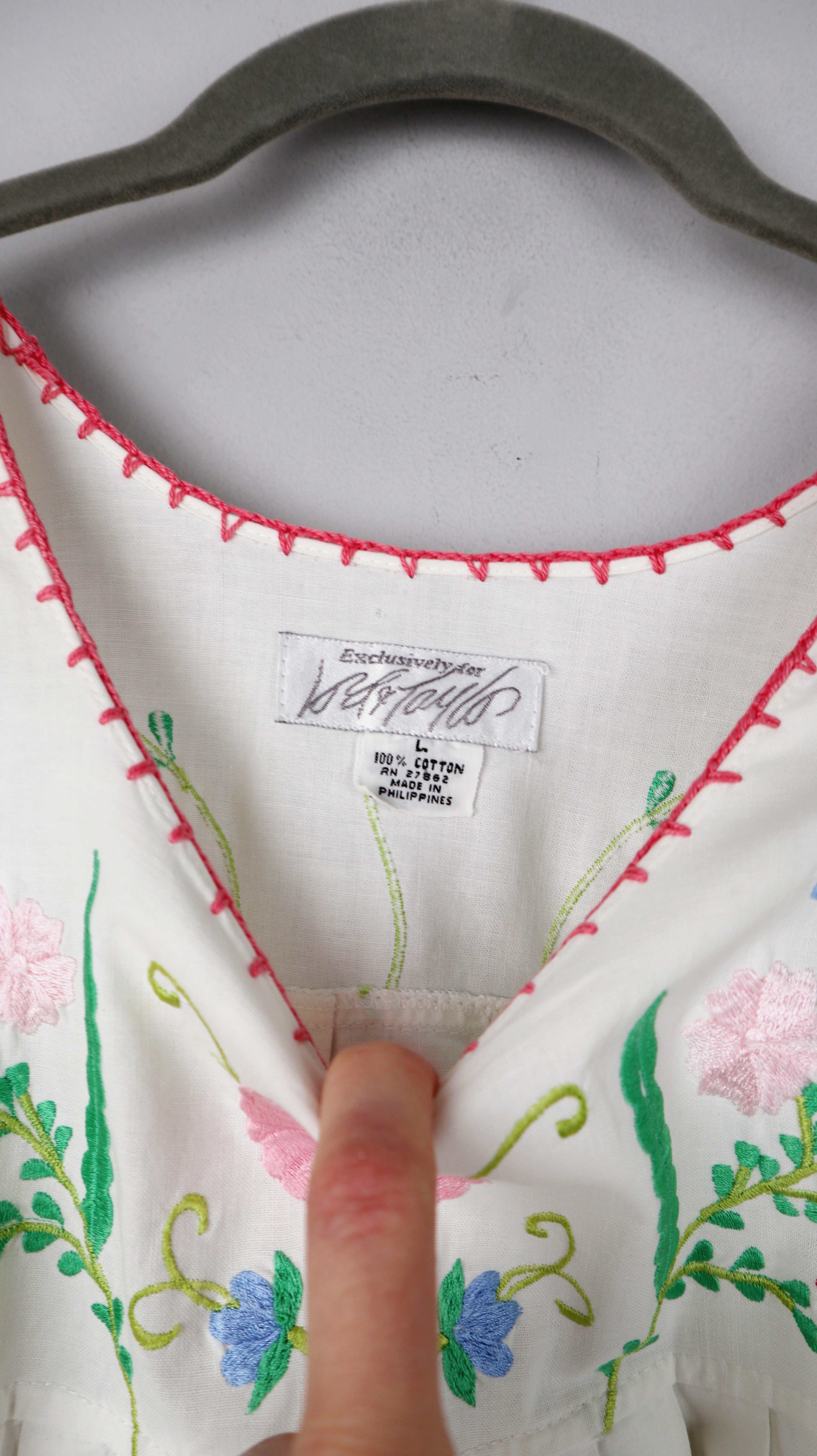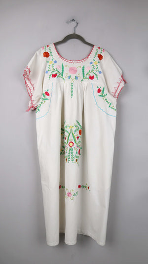 True Vintage Kleid Sommerkleid Midi weiß bestickt Hippie Bohemian 38 M Folklore