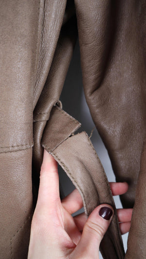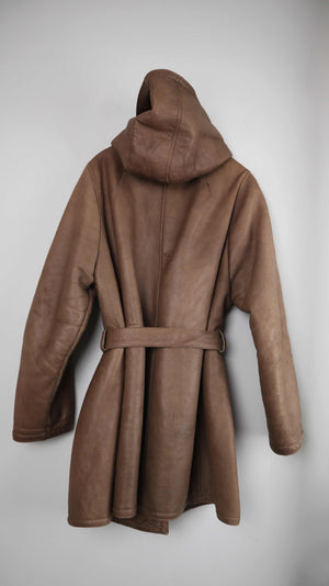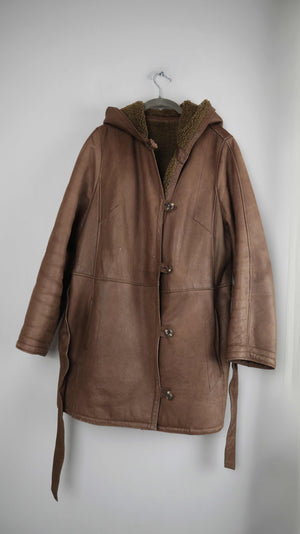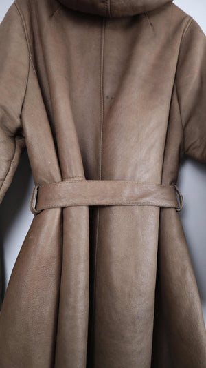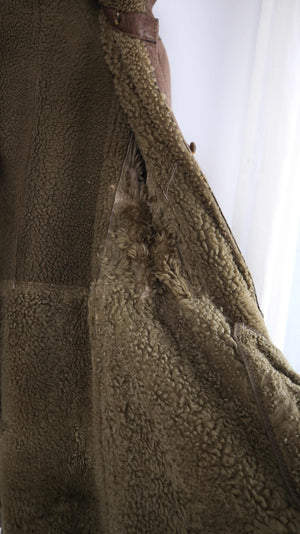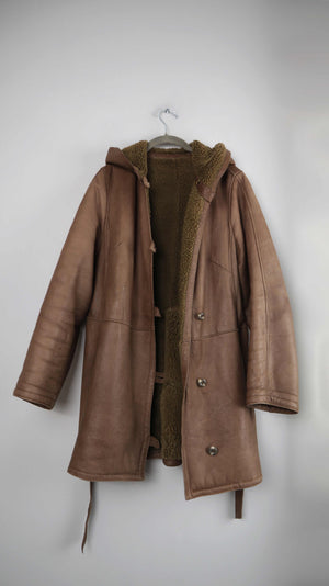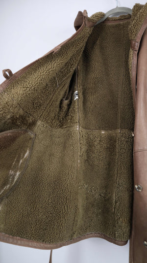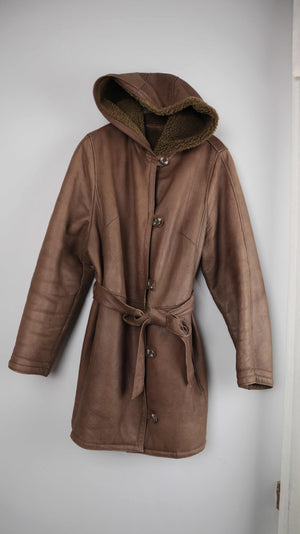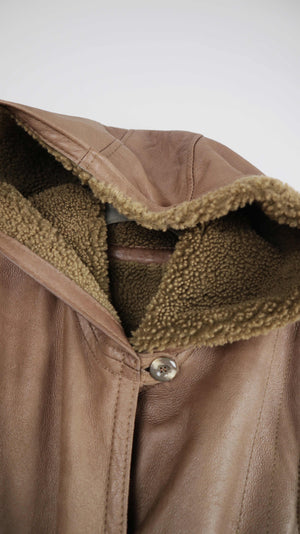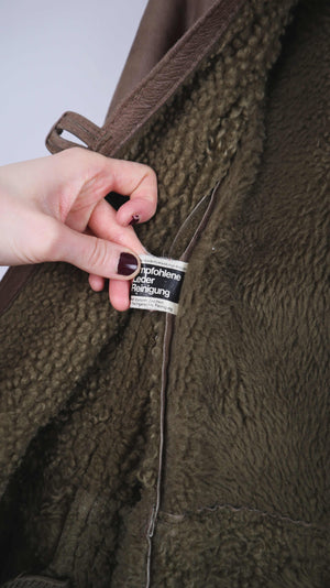 True Vintage Lammfelljacke 38 M Mantel Braun Grün gefüttert Kapuze Trenchcoat
