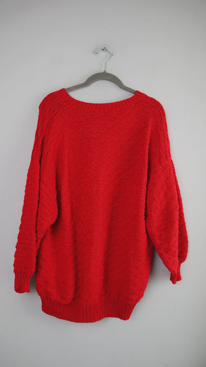 Roter Vintage Pullover in 38 M. 61 cm Achselweite und 57 cm Länge. Plus Versand