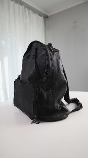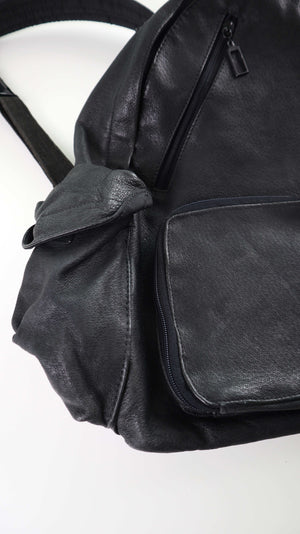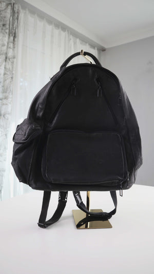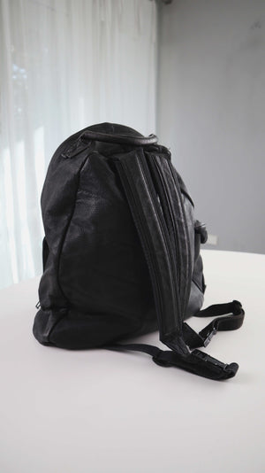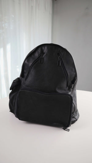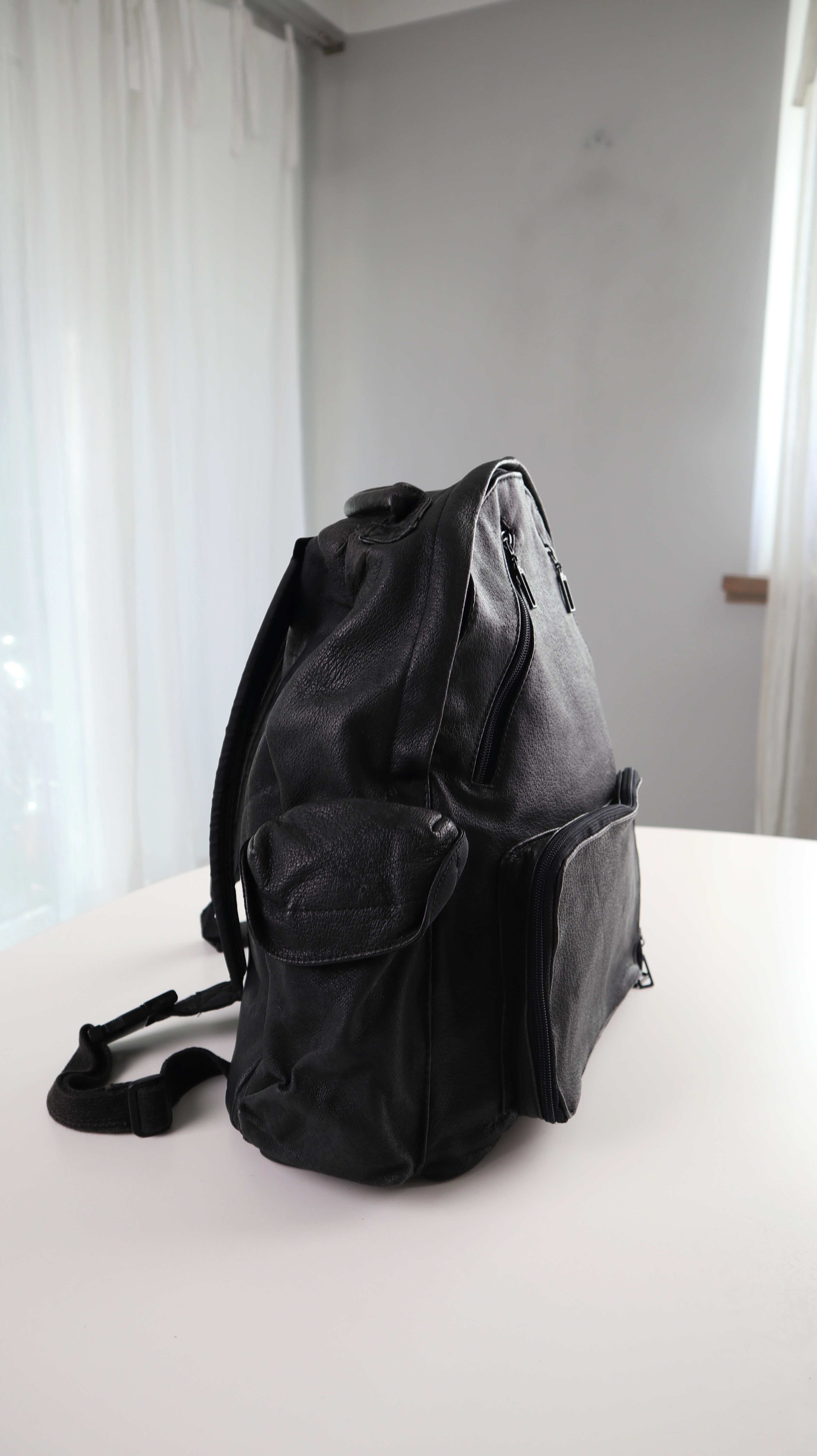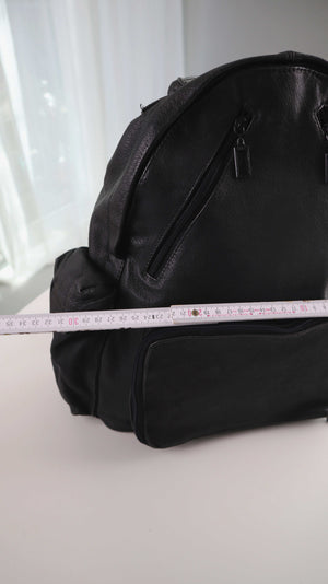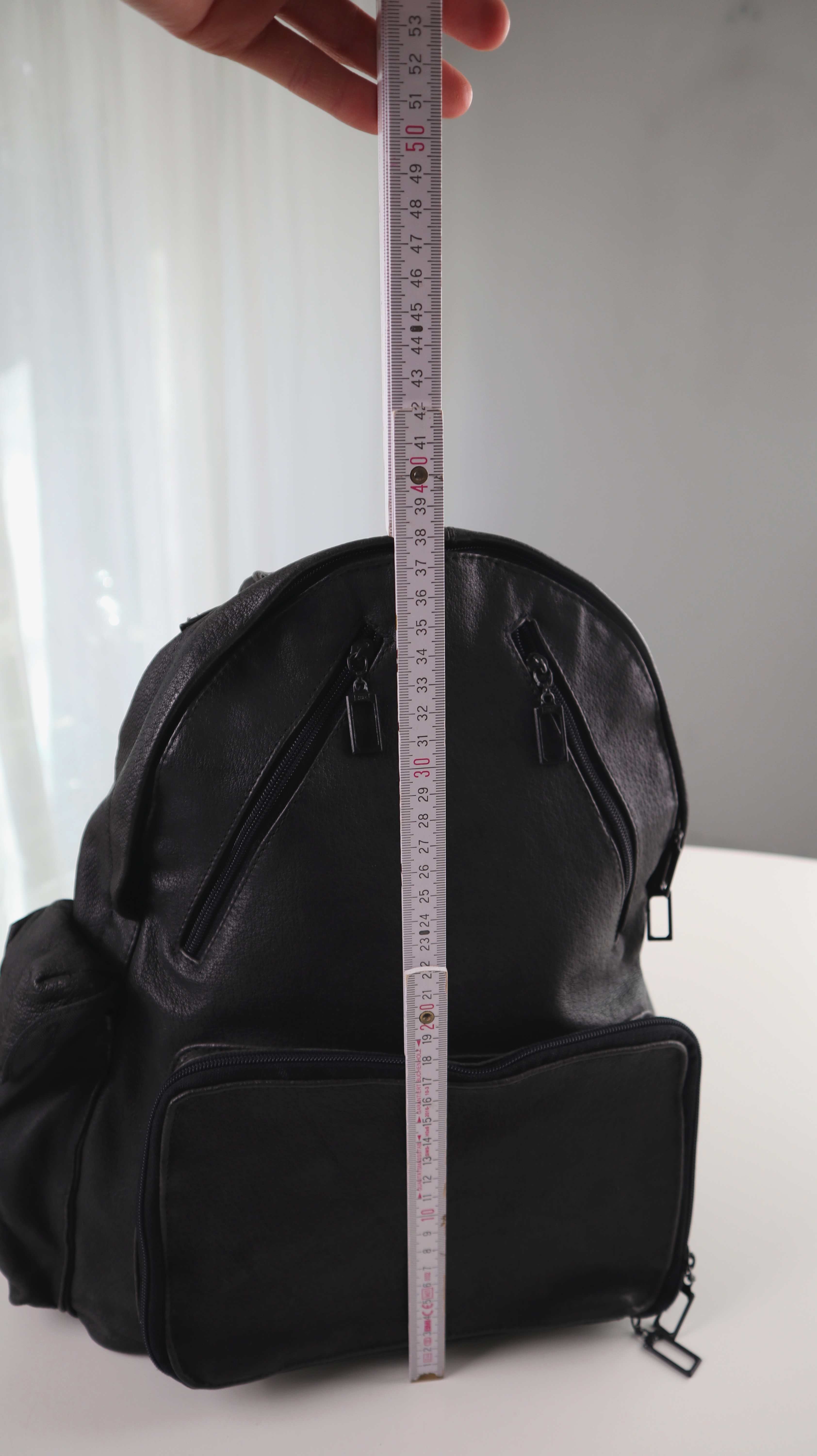 Schwarzer Lederrucksack mit vielen Fächern. Plus Versand