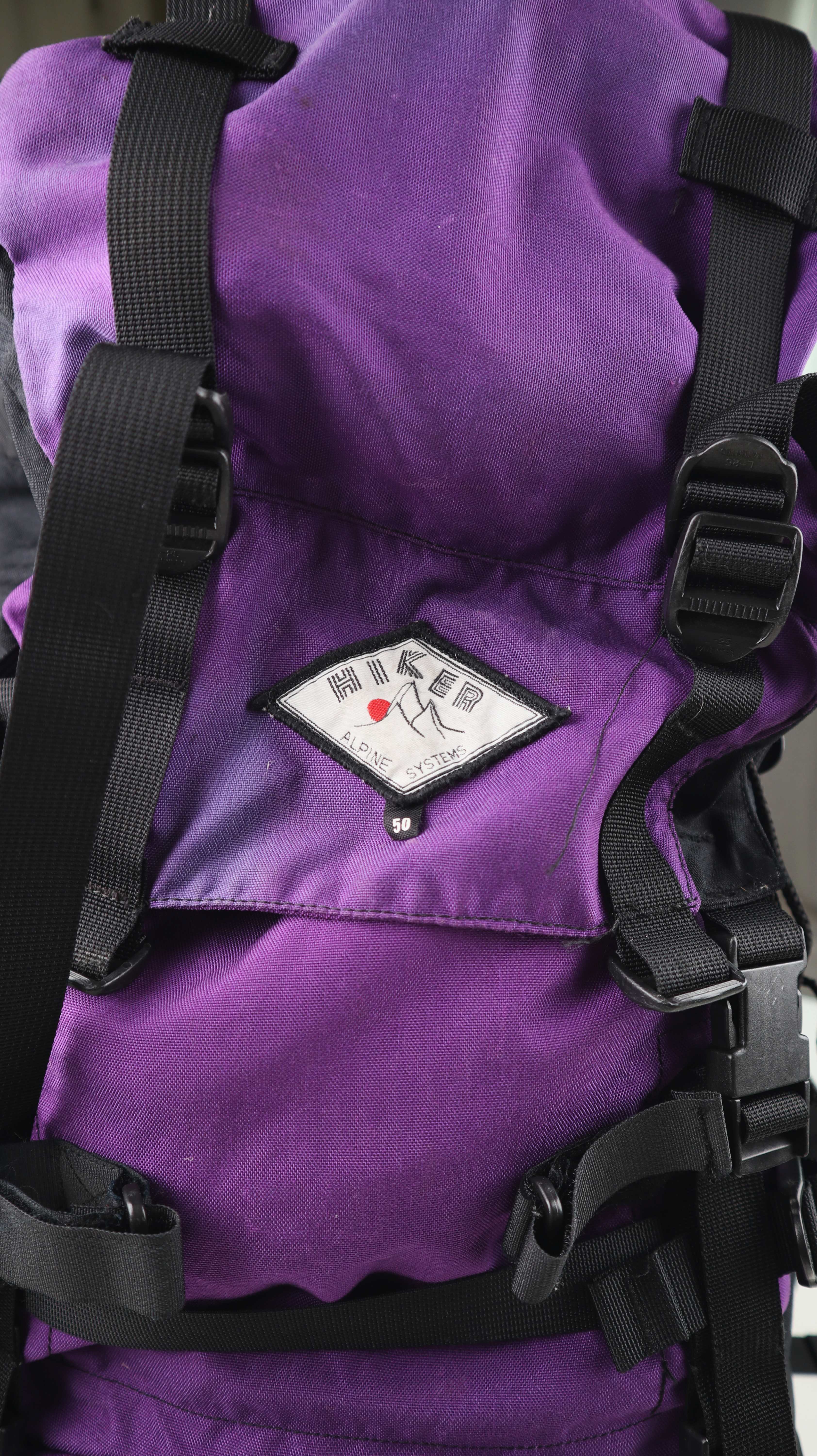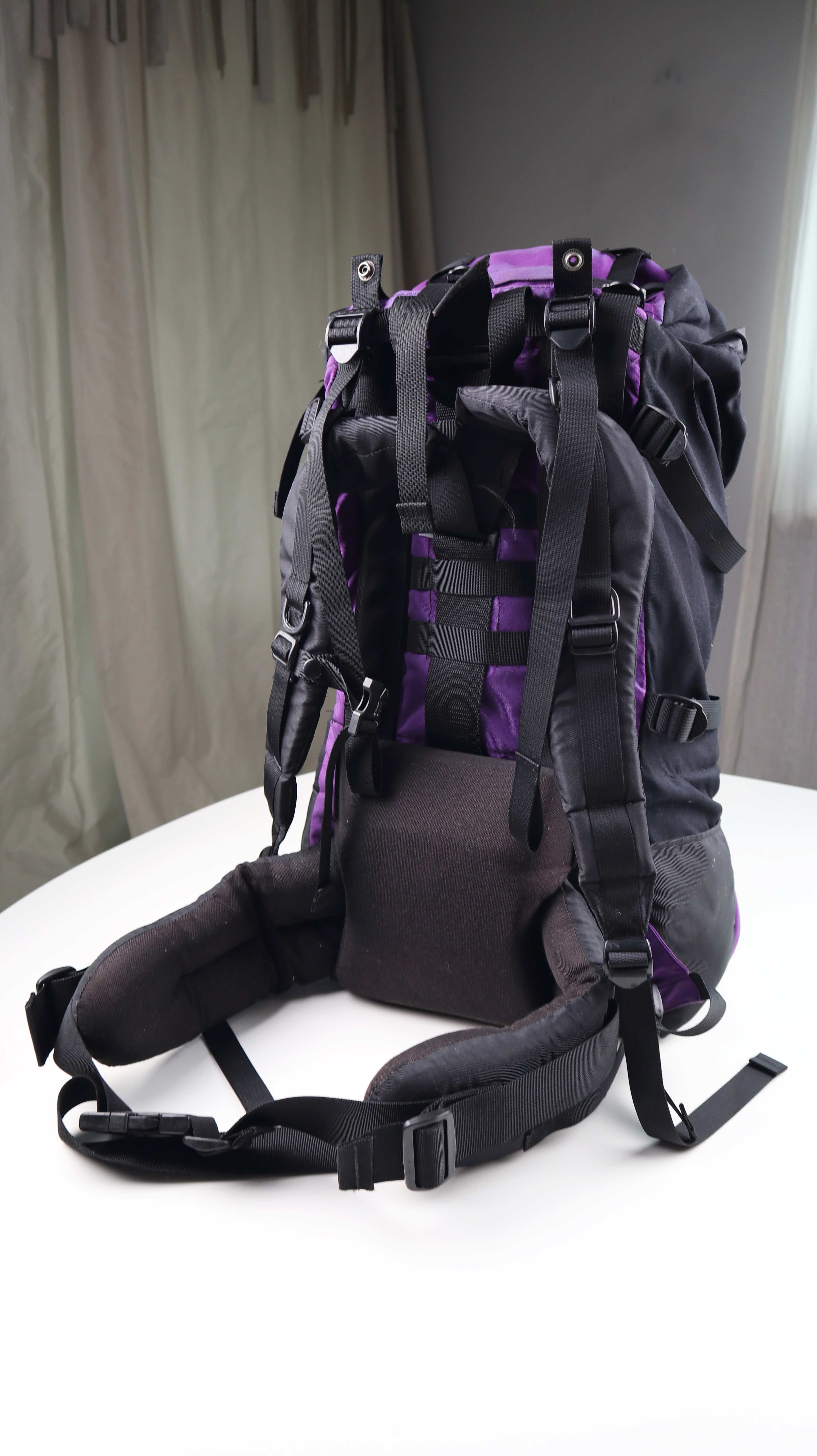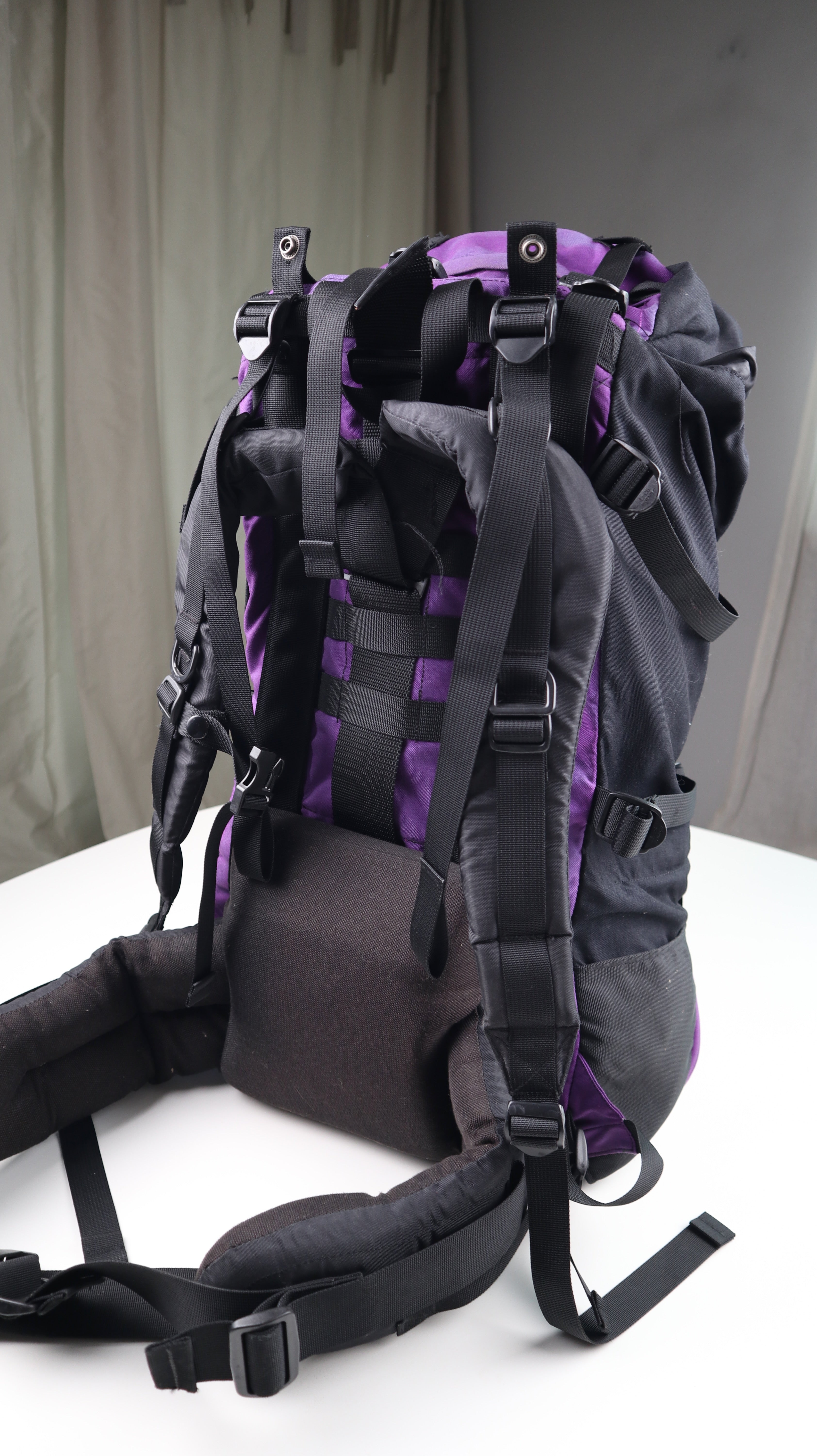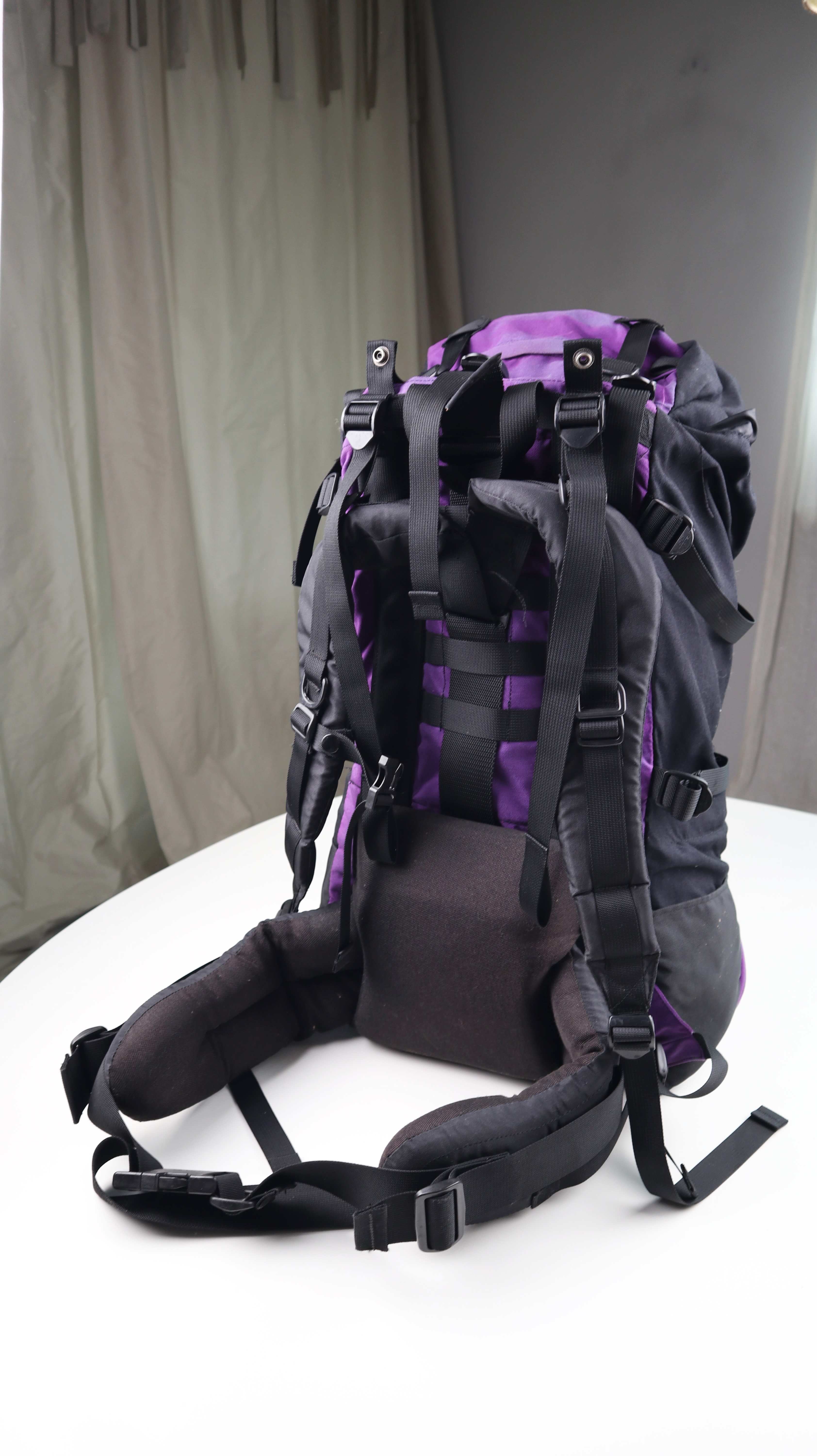 Lila Wanderrucksack. Er ist Vintage, dennoch sehr gut vom Zustand, fasst etwa 55 Liter und hat innen Unterteilungen. Plus Versand