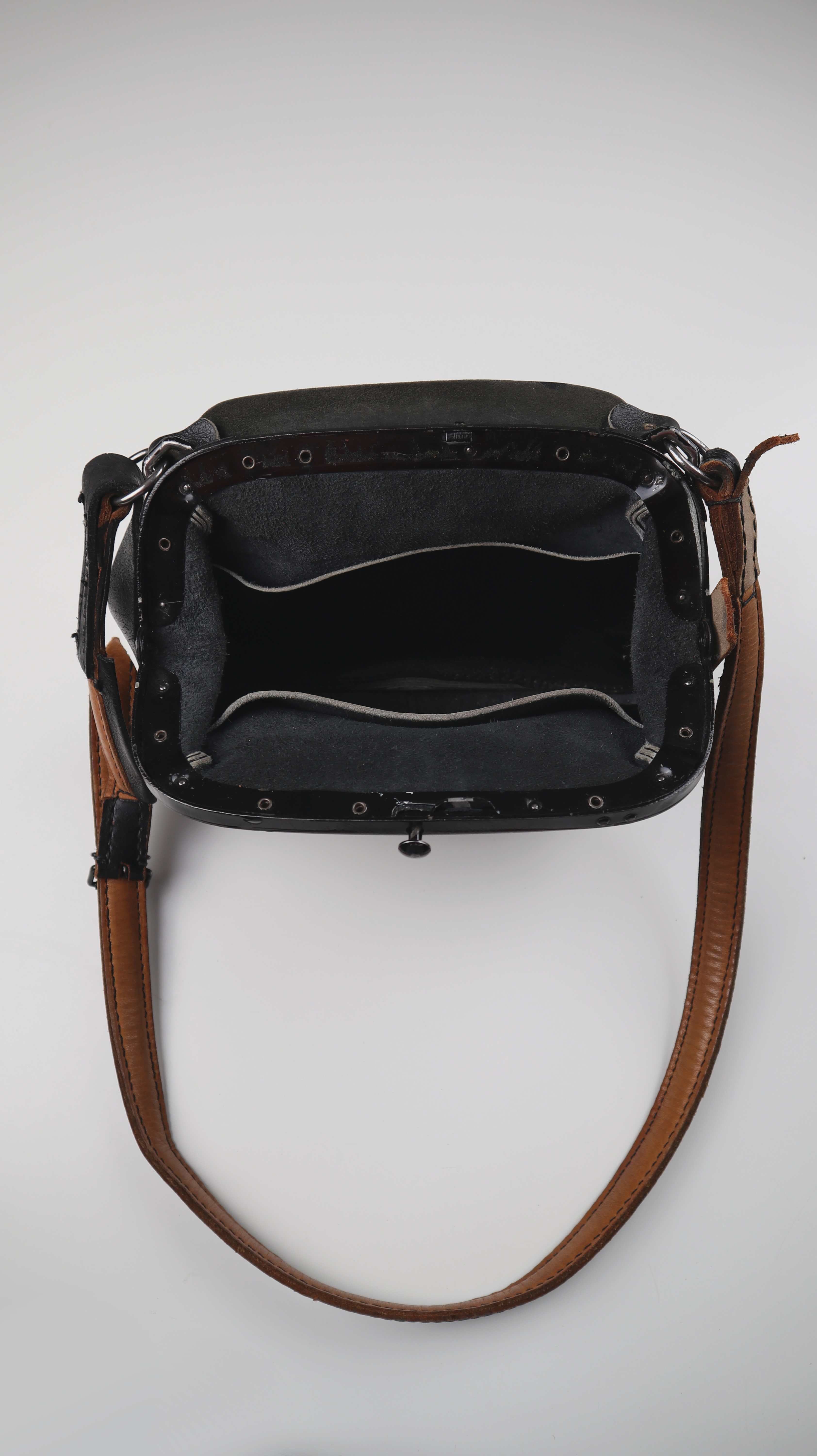 Sehr schöne und besondere alte Schaffnertasche. Sie ist in einem wunderbaren Zustand und hat einen kleinen Knopf zum Drücken, um den Metallbügel oben zu öffnen. Plus Versand
