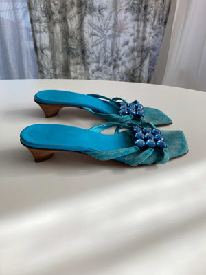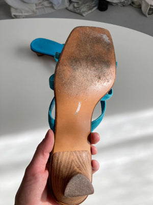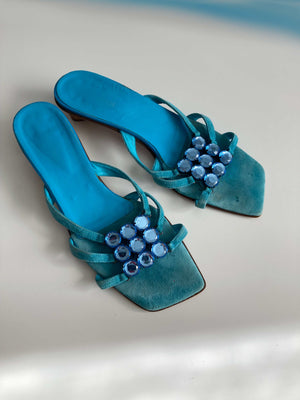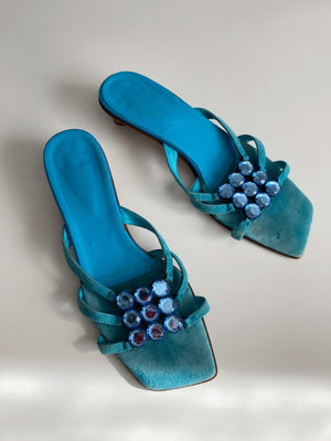 True Vintage Slipper Loafer Sandalen Blau Türkis 39 90s Y2K Absatzschuhe