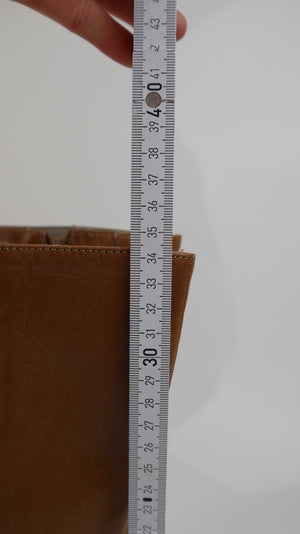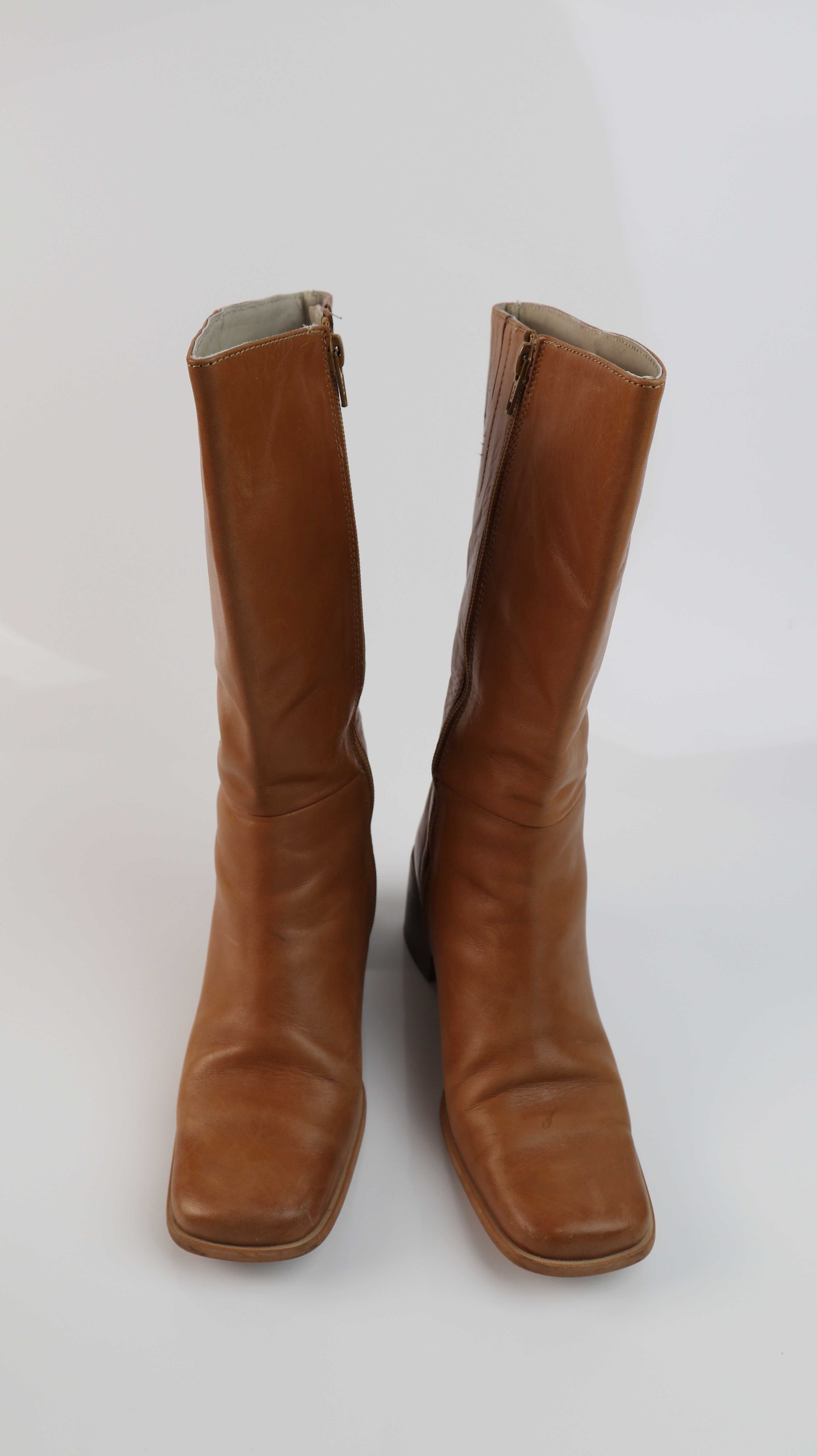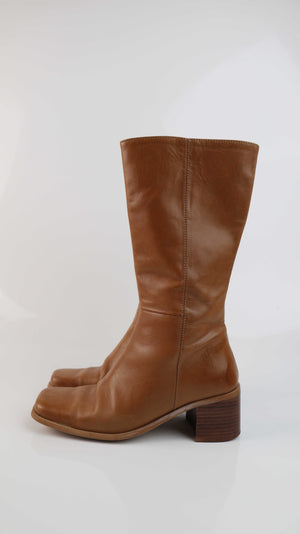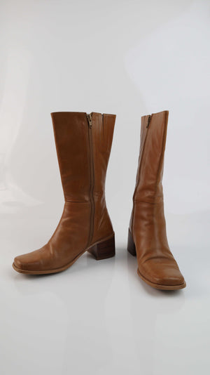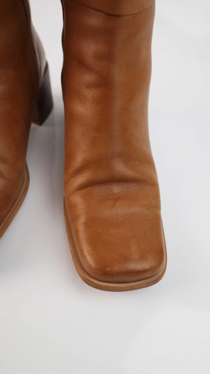 True Vintage Stiefel Braun 38 eckig 90s Lederstiefel lang Y2K