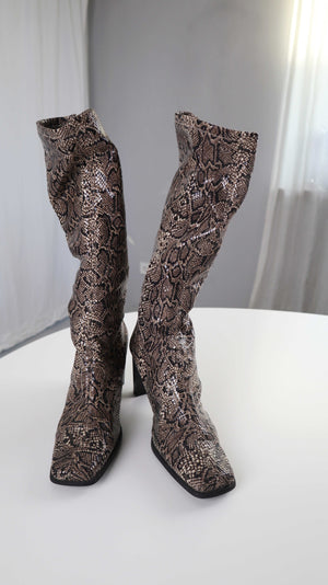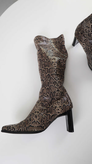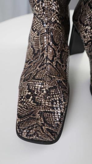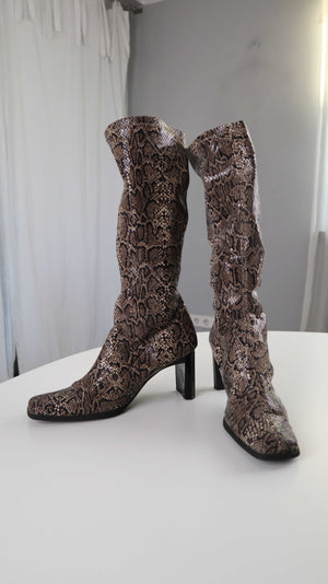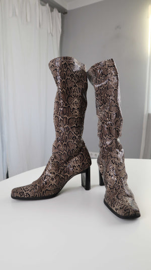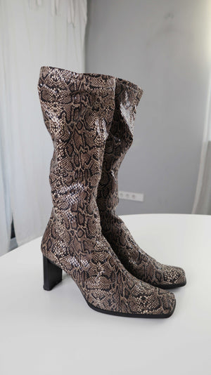 True Vintage Stiefel eckig 40 2000er Schlange Animalprint