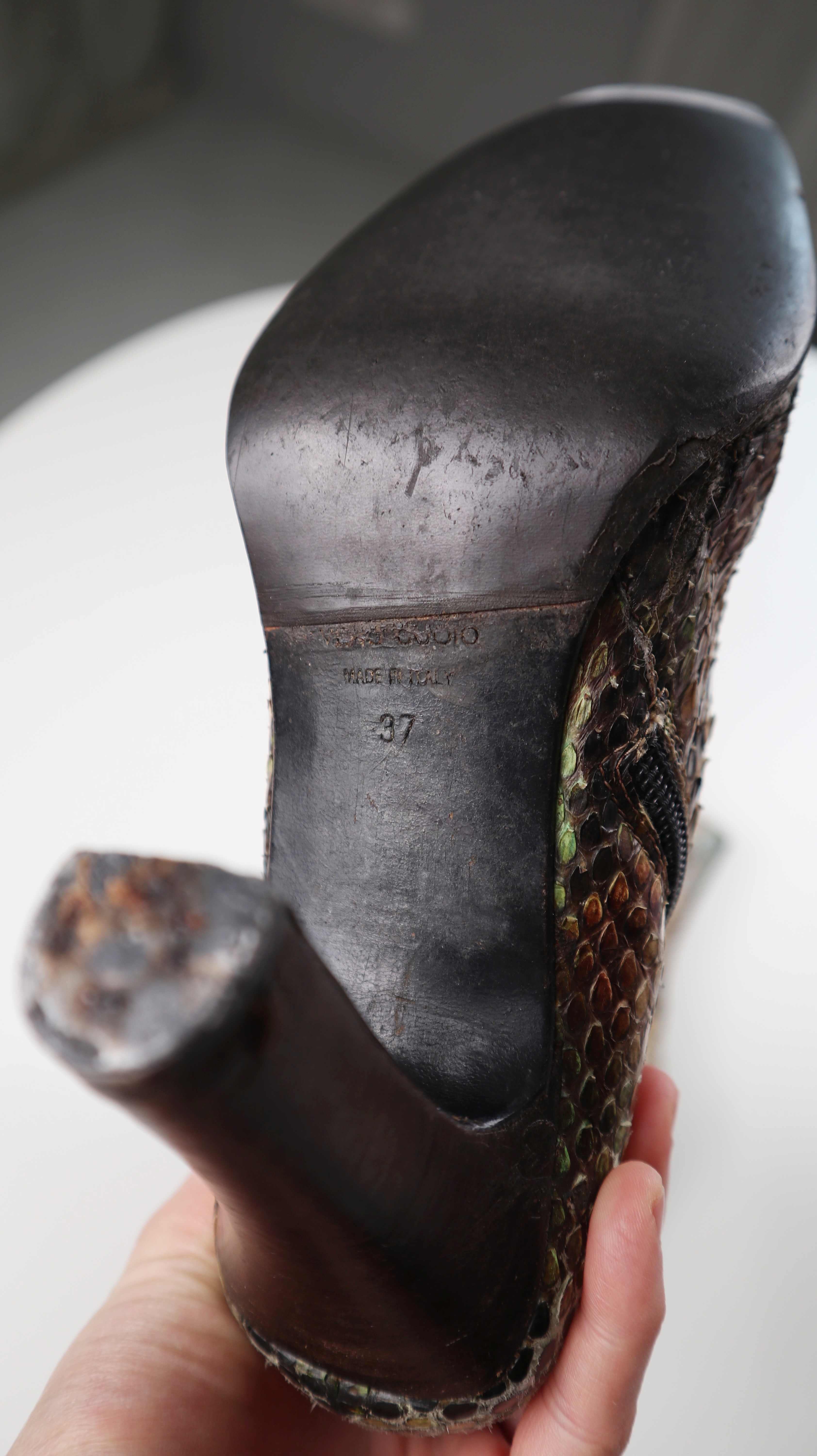 True Vintage Stiefel Grün Braun Boots Stiefeletten Schlange 37 made in italy
