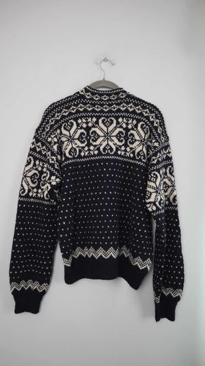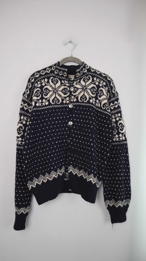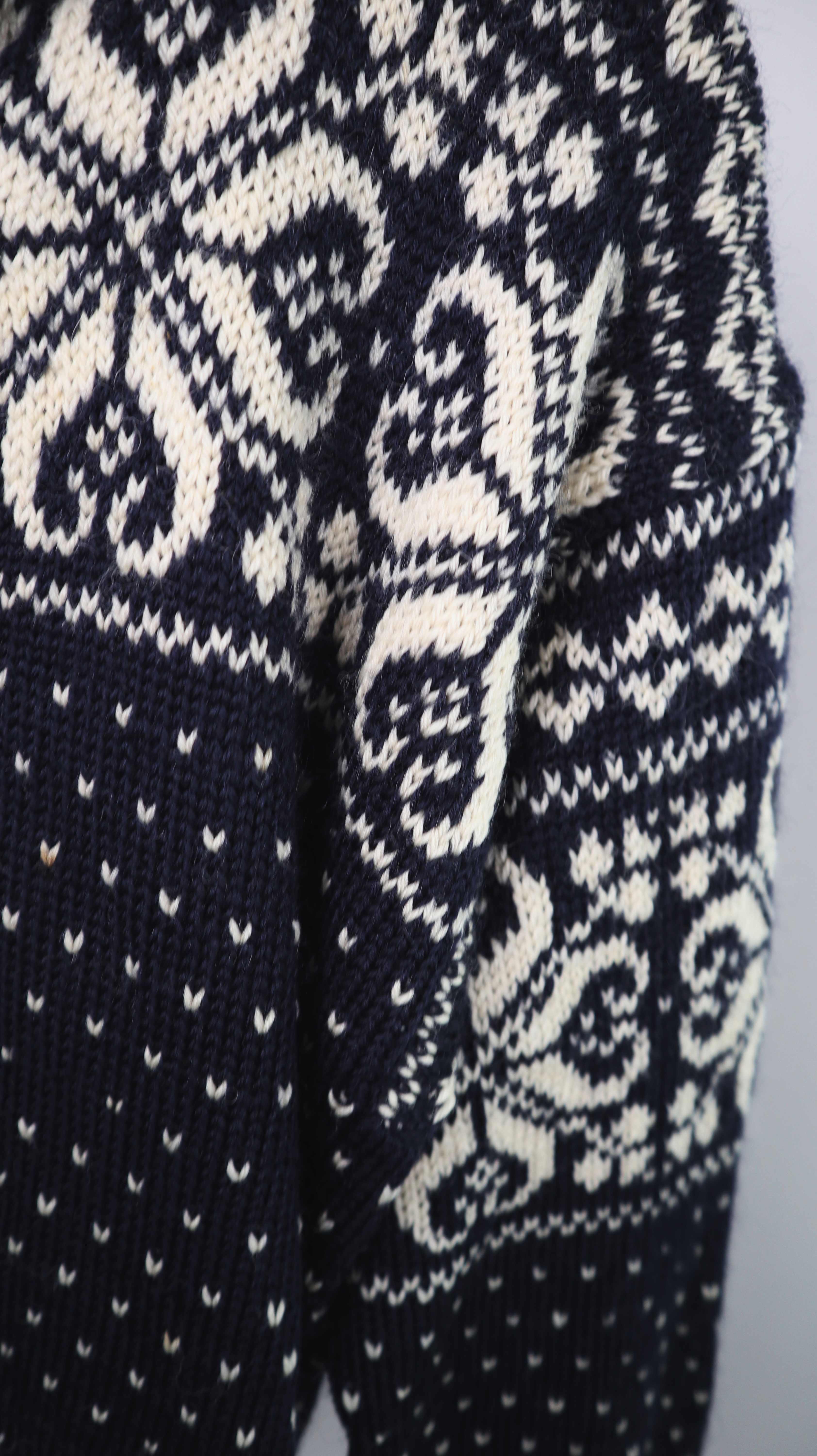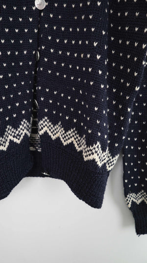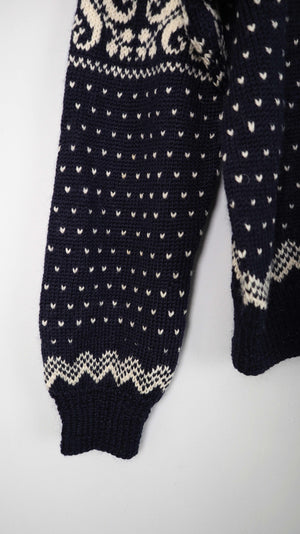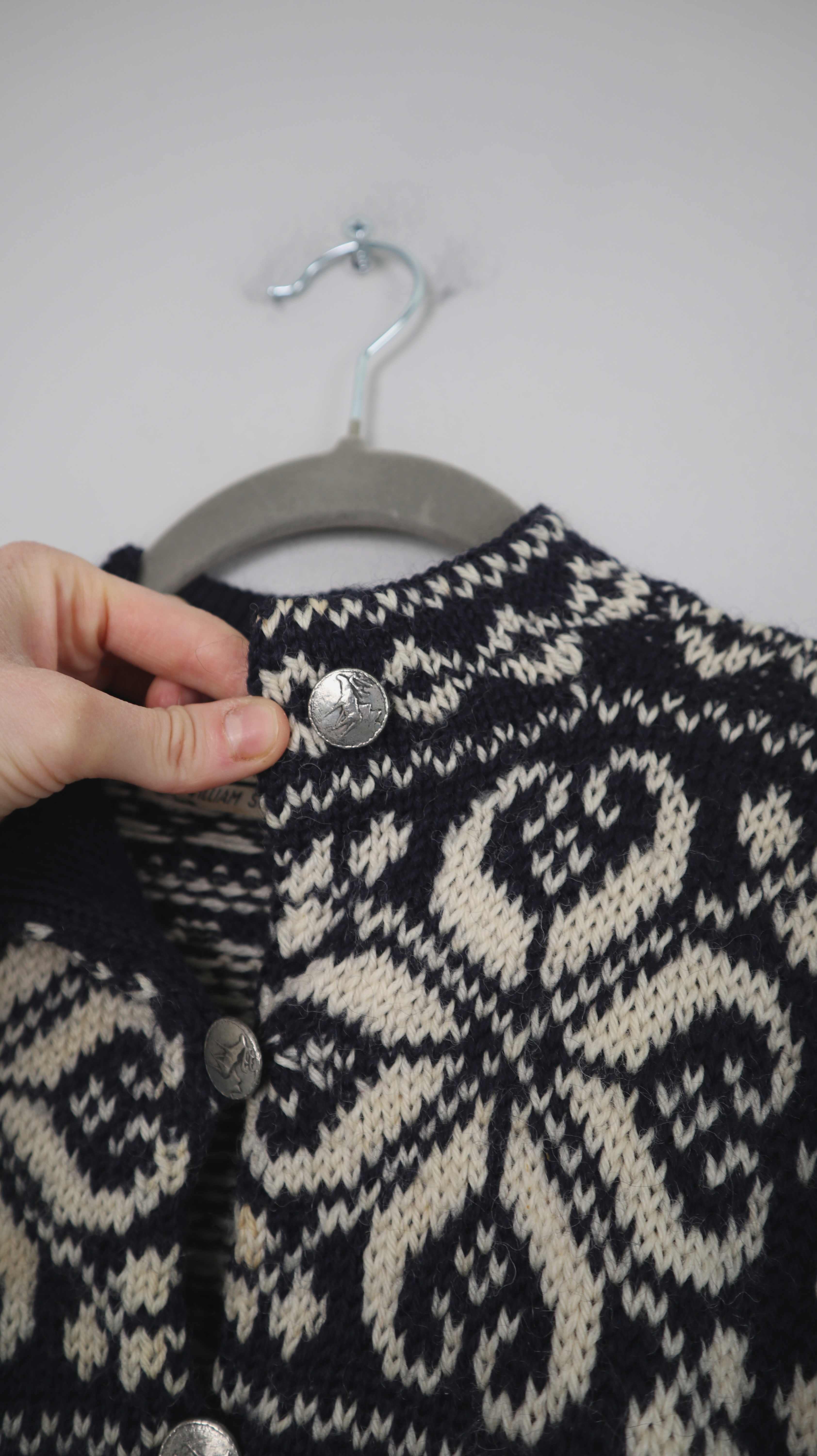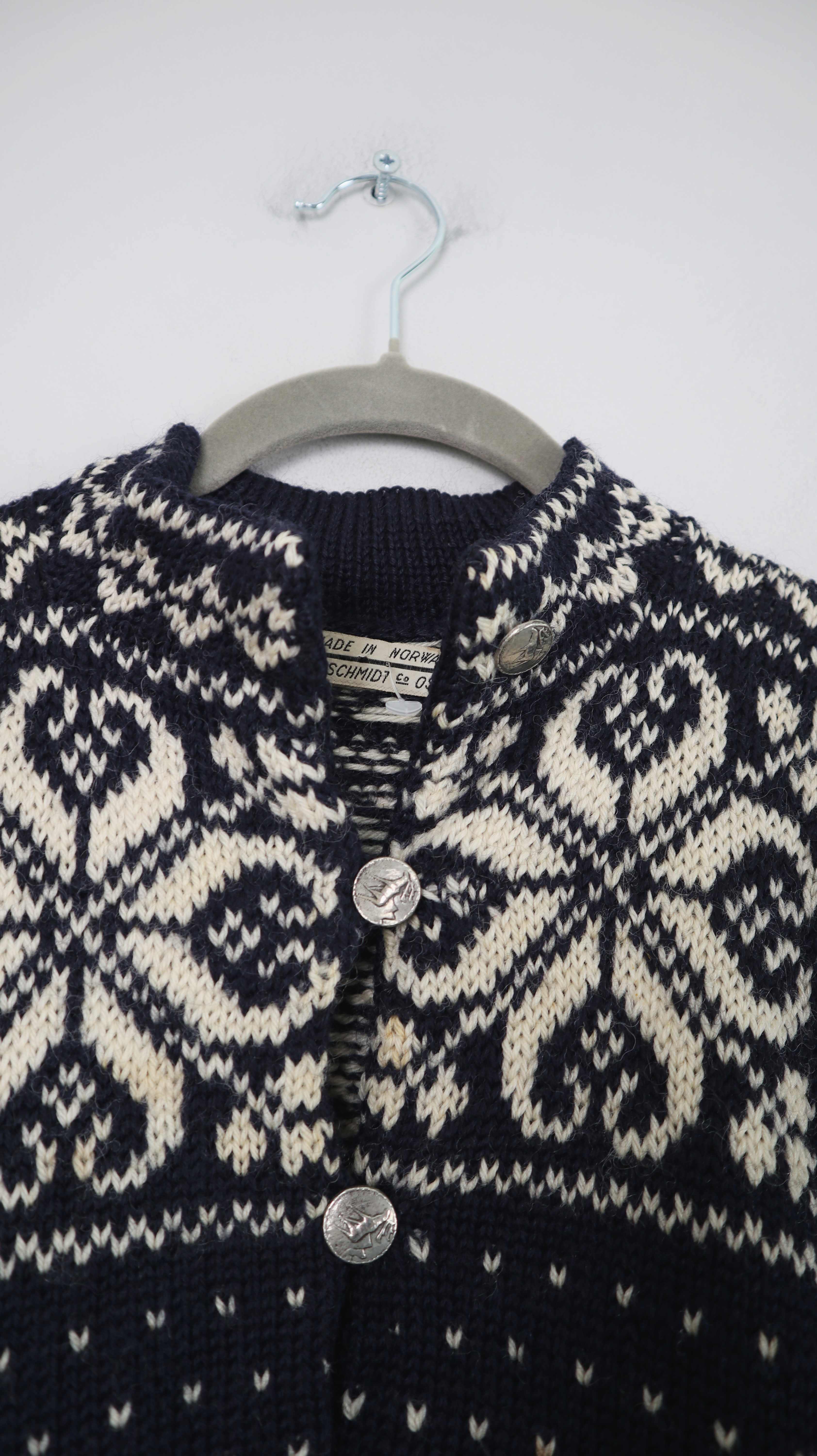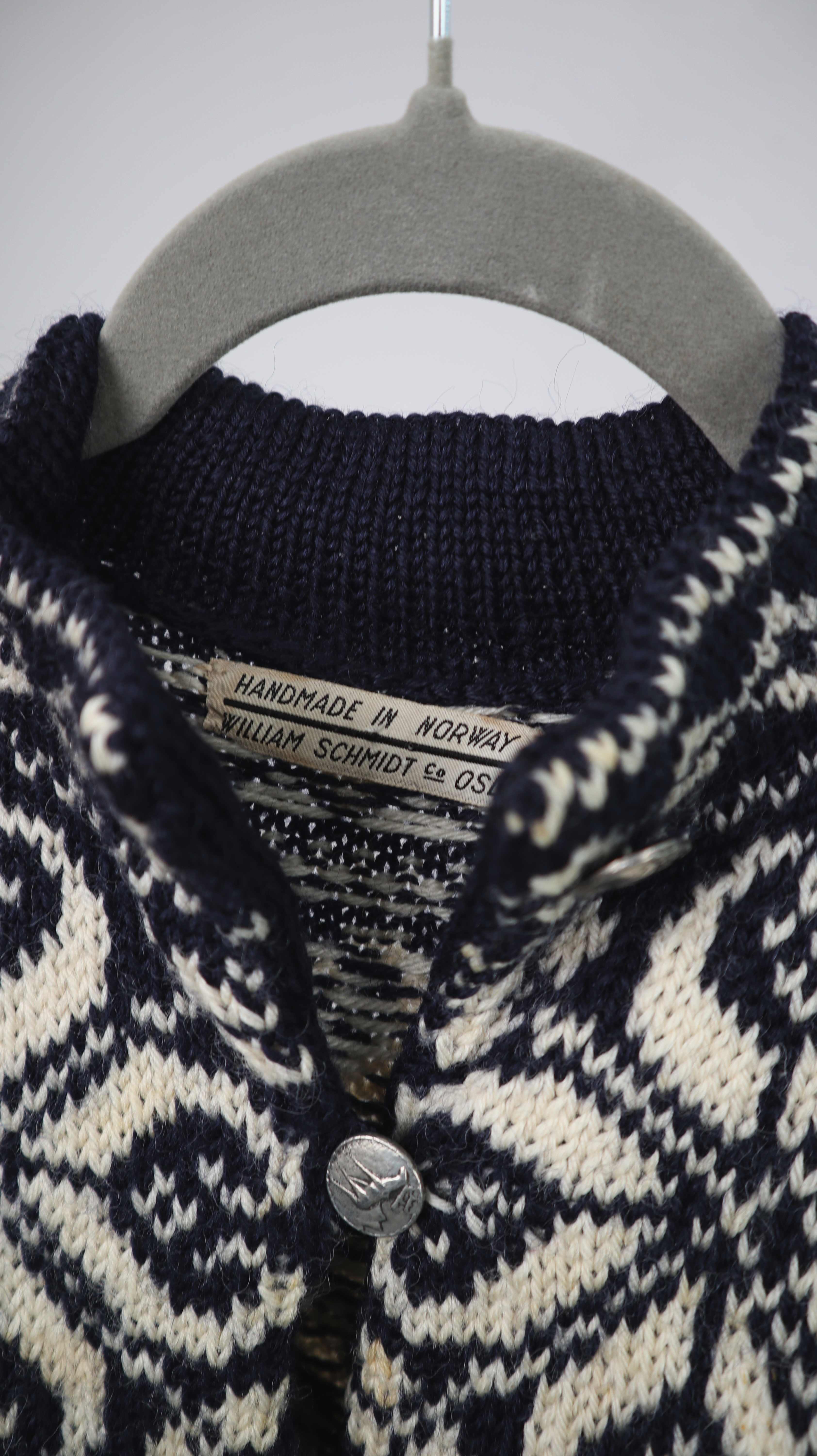 True Vintage Strickjacke Norwegerstrickjacke Dunkelblau Wolle William Schmidt Oslo