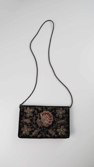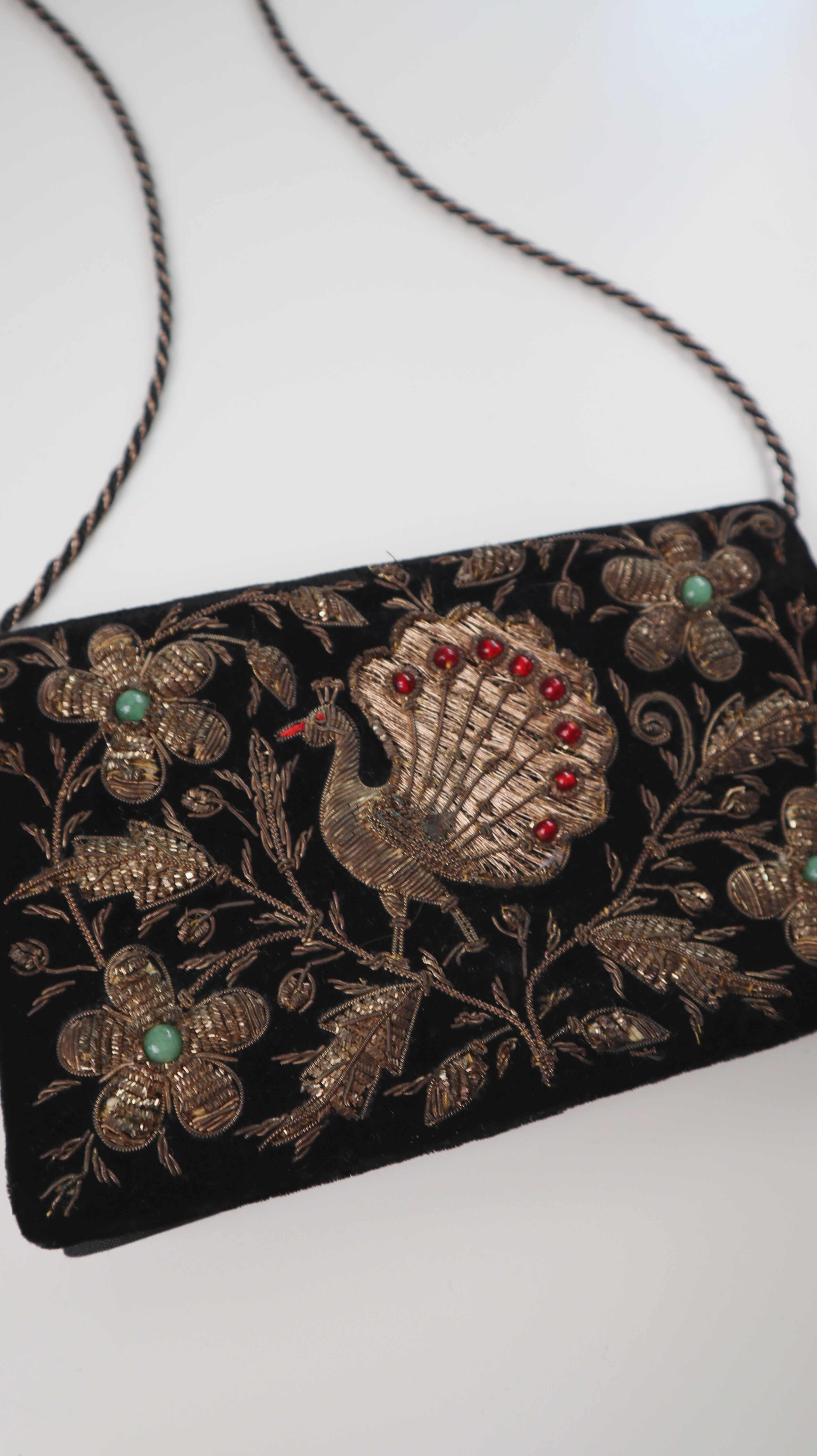 Vintage Tasche, bestickt, mit einem Pfau. Innen ein großes Fach. Plus Versand
