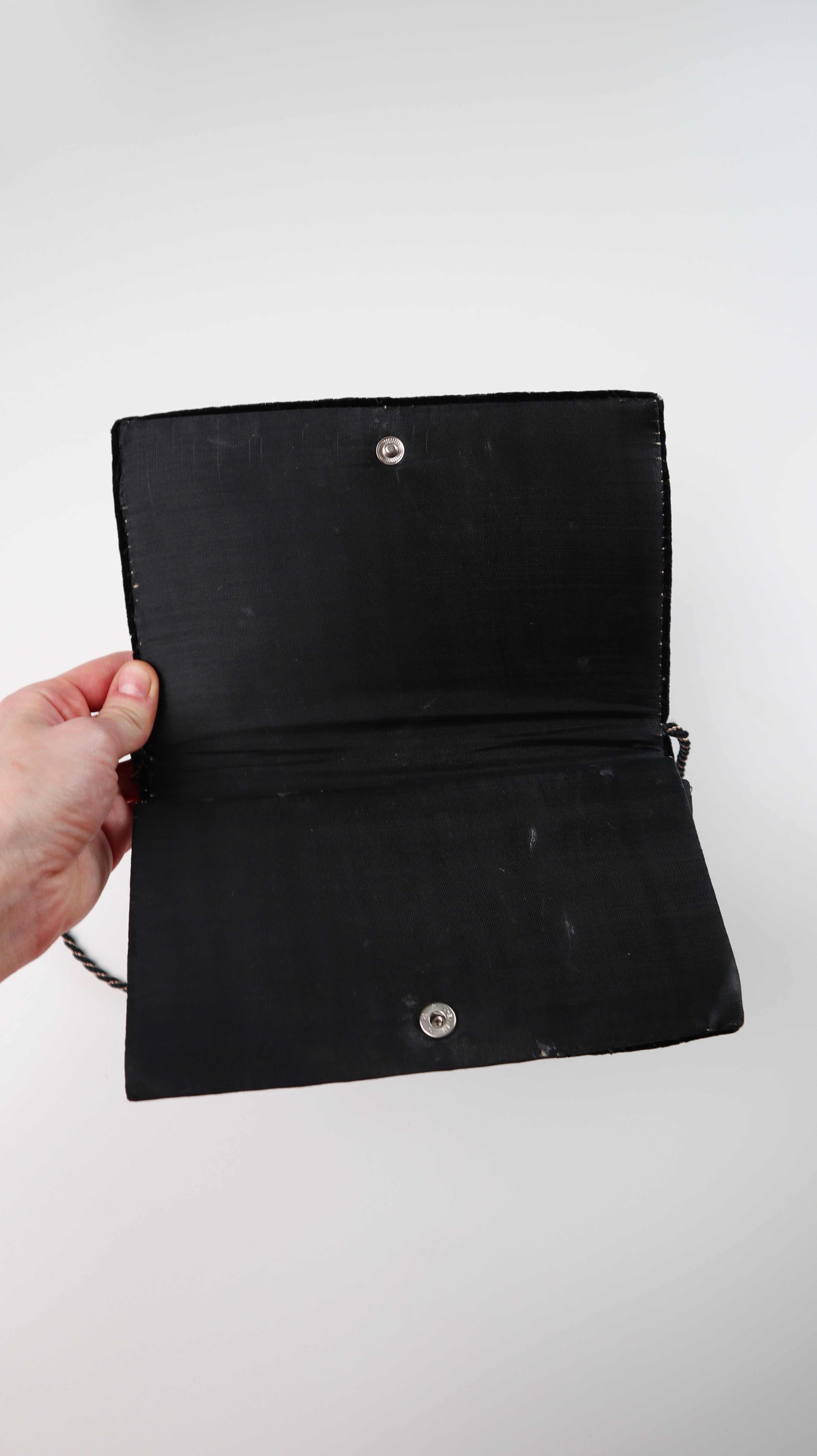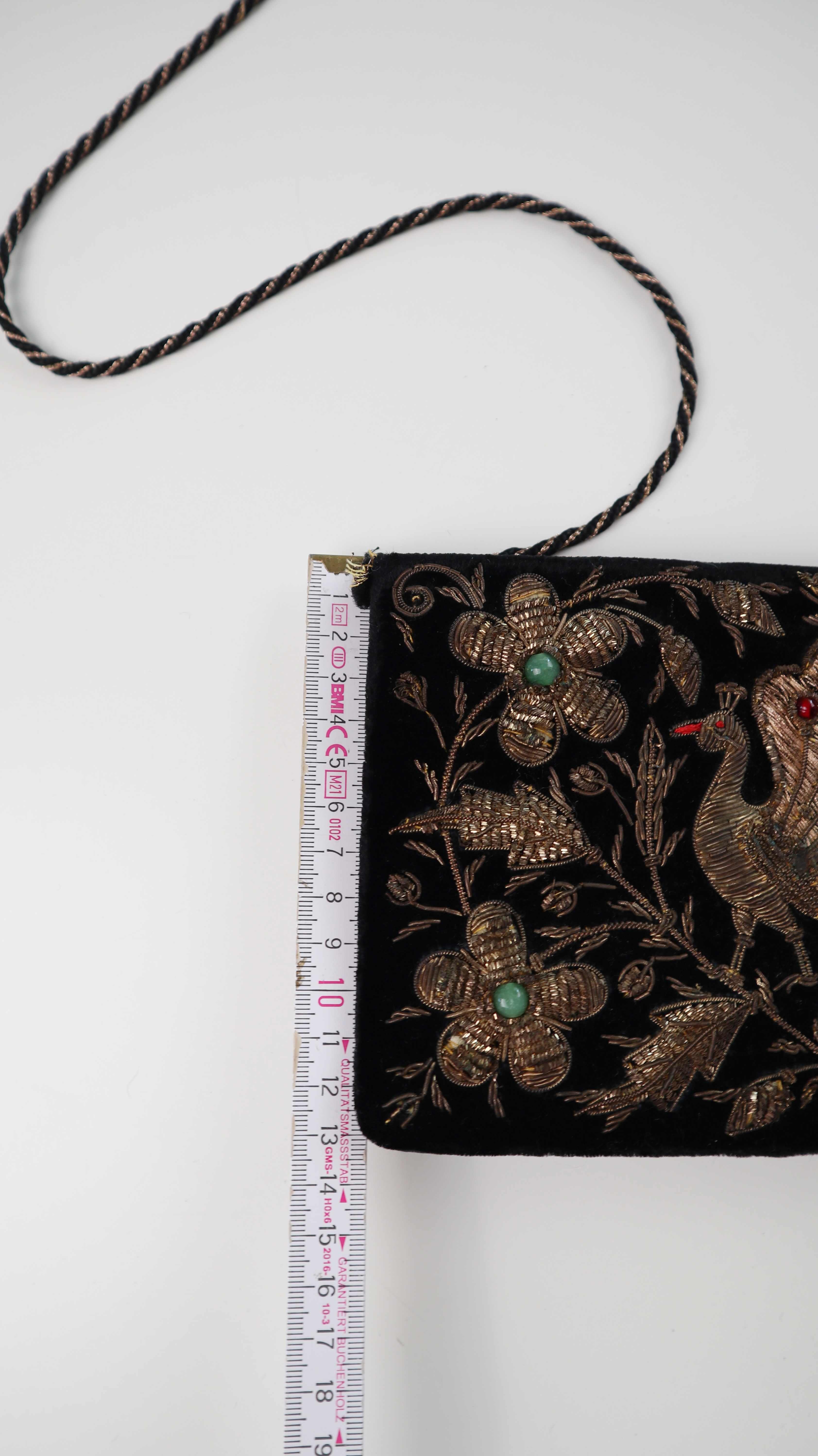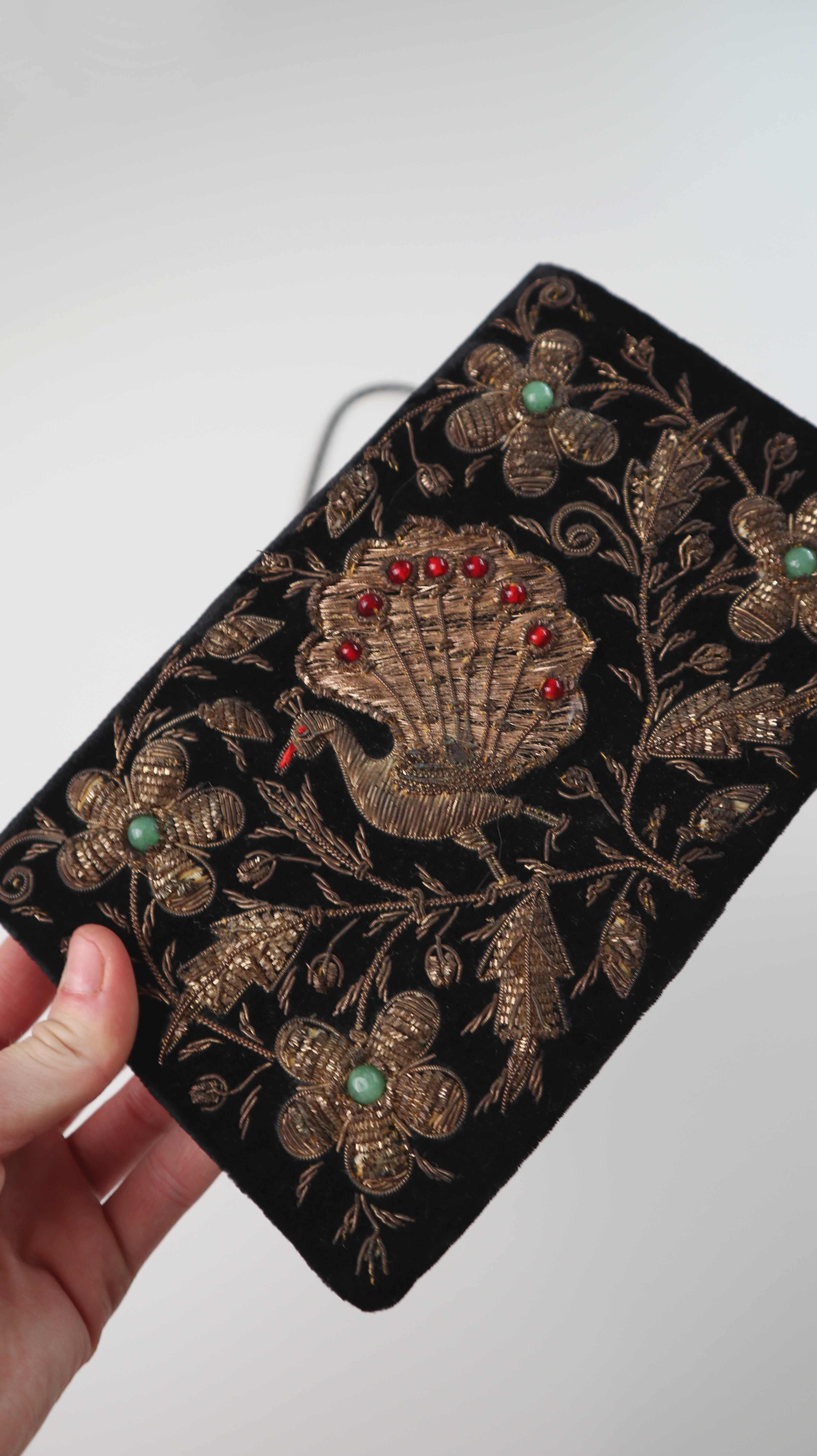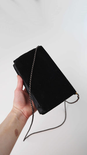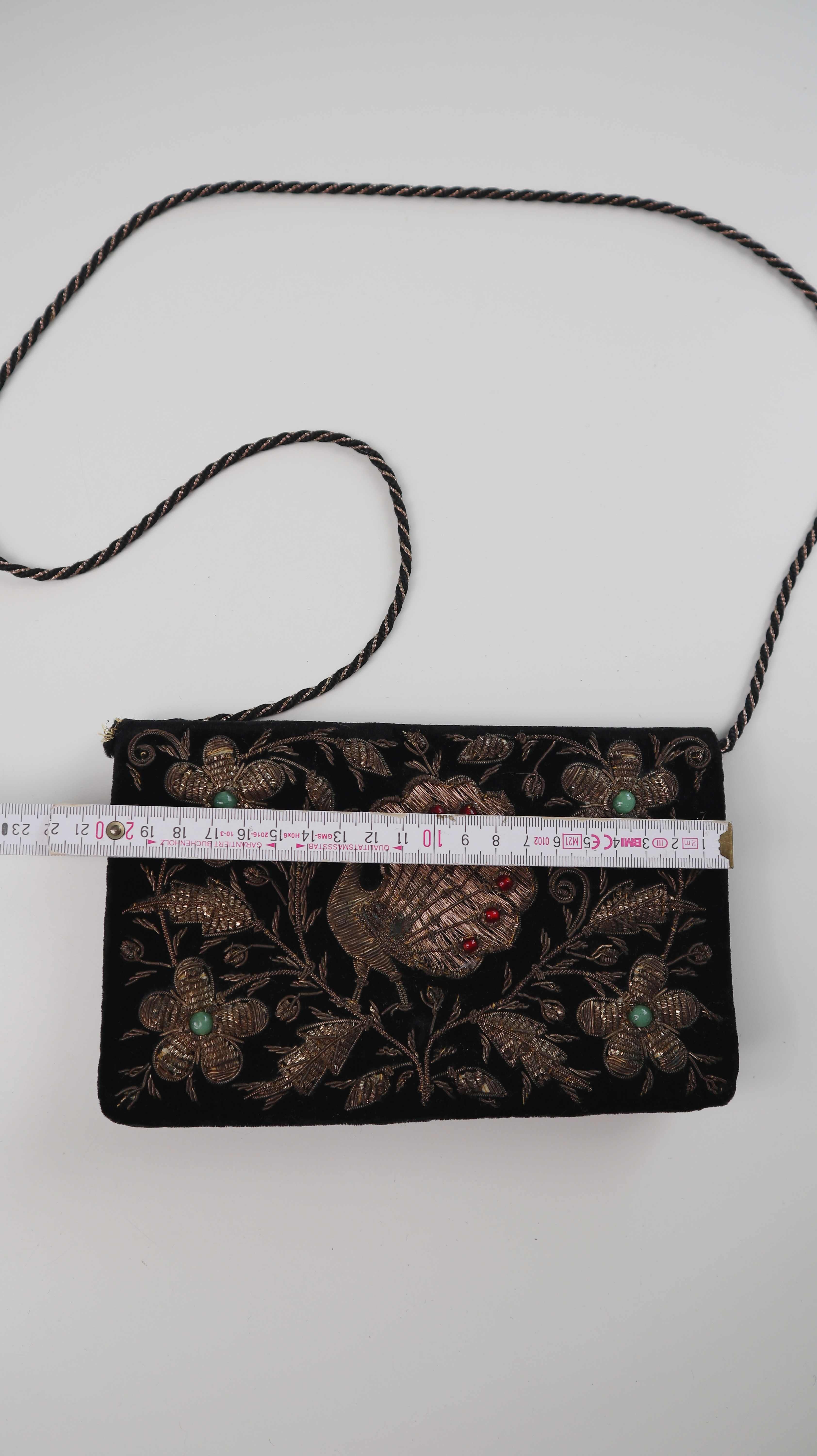 True Vintage Tasche Handtasche Jugenstil bestickt Gold schwarz Samt Samttasche